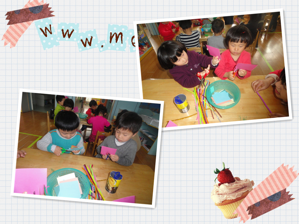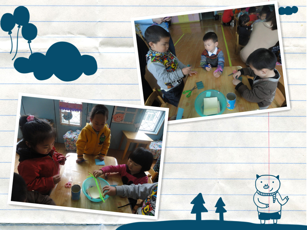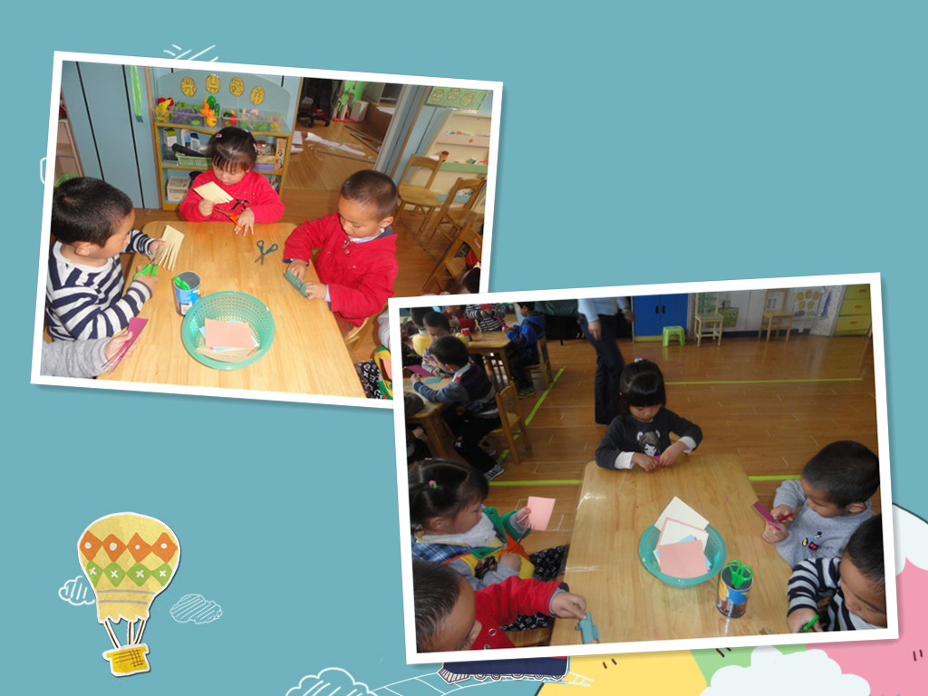 我们宝宝的小手很灵活哦,用剪刀时也注意安全,不活将剪刀对着别人或者剪到自己,很棒哦!