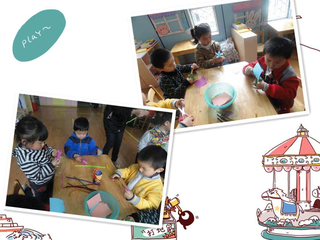 毛根不会扎的宝宝可以请老师帮忙哦,将你做的小花都绑在一起就成了一束花啦!