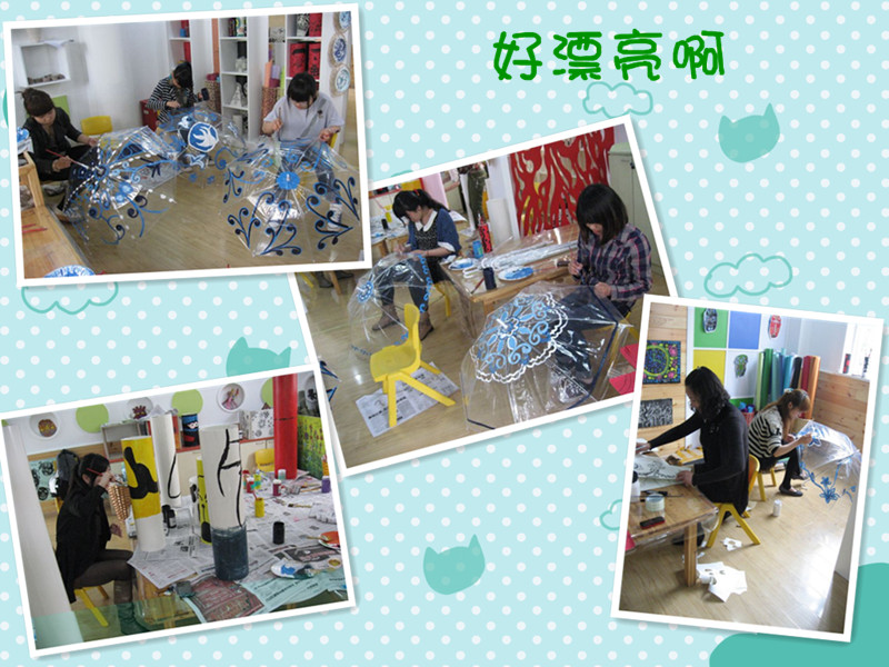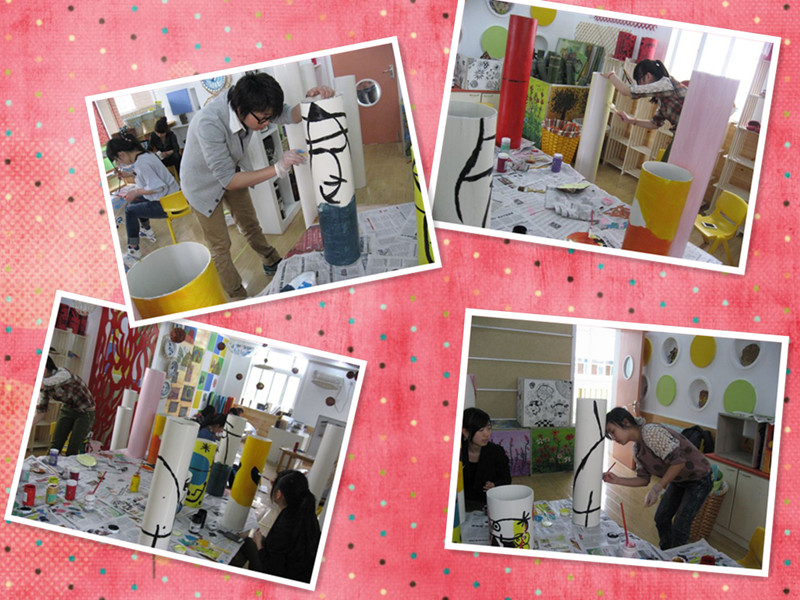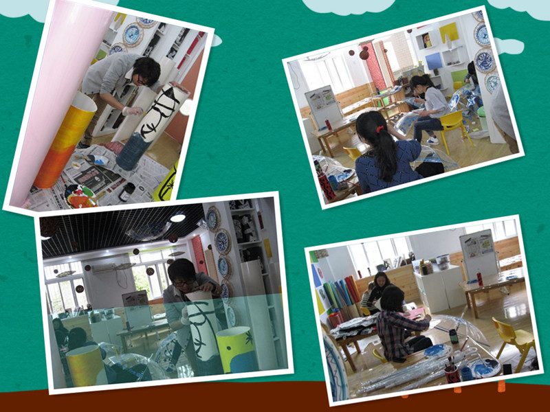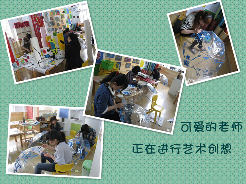 我们的老师,发挥艺术创想,用PVC管和透明伞进行装饰和改造。