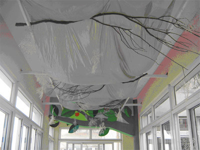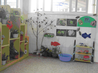 班级在环境布置时,大多选用孩子们的作品,当他们看到自己的作品被展出后,会增加对创作的兴趣同时也能增强他们的自信心; 幼儿给自然角的植物浇水,给小金鱼、小乌龟喂食,记录观察的结果,培养了他们爱劳动的习惯,也培养了他们关心集体的良好行为。
