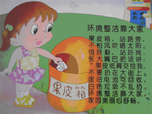 长廊壁上挂着儿歌,这些儿歌大多围绕培养幼儿的生活习惯、卫生习惯、自理习惯、文明礼貌习惯、交往合作习惯为内容的。简洁明快的儿歌配上生动可爱的图片,最适合幼儿园孩子了。当他们散步或搀着爸爸妈妈经过长廊时都会开心的念着,潜移默化中孩子们受到了教育。