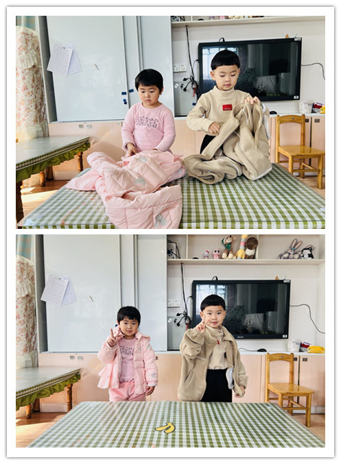 天气渐渐冷了,午睡起床后,小朋友们从温暖的被窝里面起来需要快速的穿好衣服,老师们即使动作再快也不能让所有孩子同时穿好外套,所以我们在班级生活区开设了穿衣服的游戏,利用游戏时间让孩子们学会给娃娃穿衣服,最后自己学会穿衣服,还让会自己穿衣服的小朋友们在班级进行了展示。小朋友们学穿衣服的热情非常高涨。