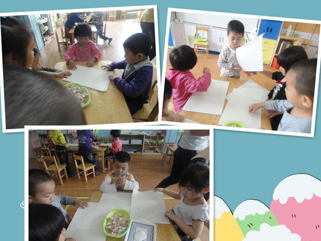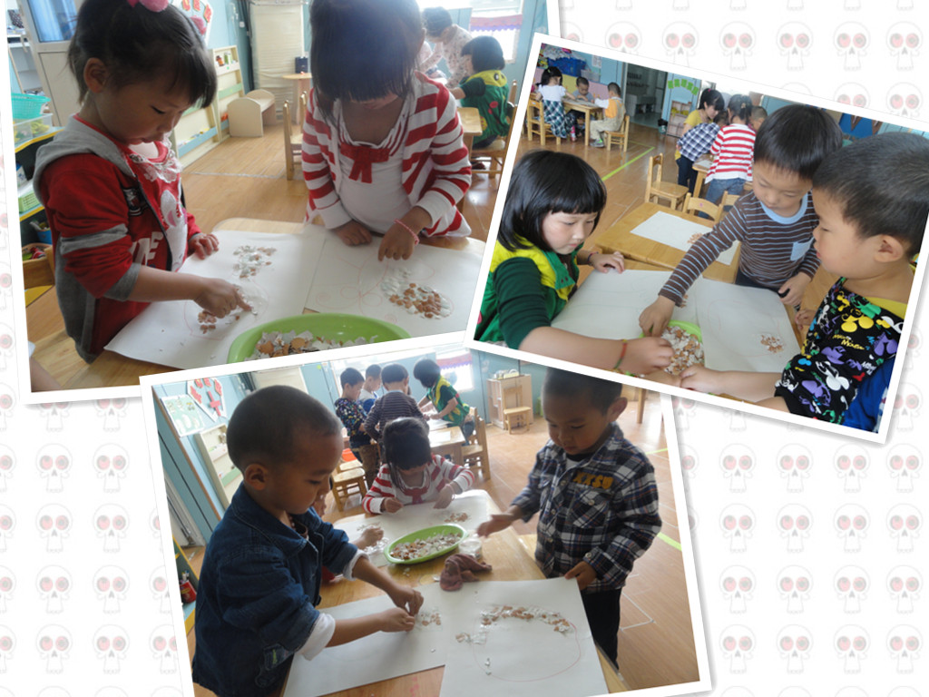 贴蛋壳的时间有点长,考验宝宝们的耐心地时候到啦。加油哦。