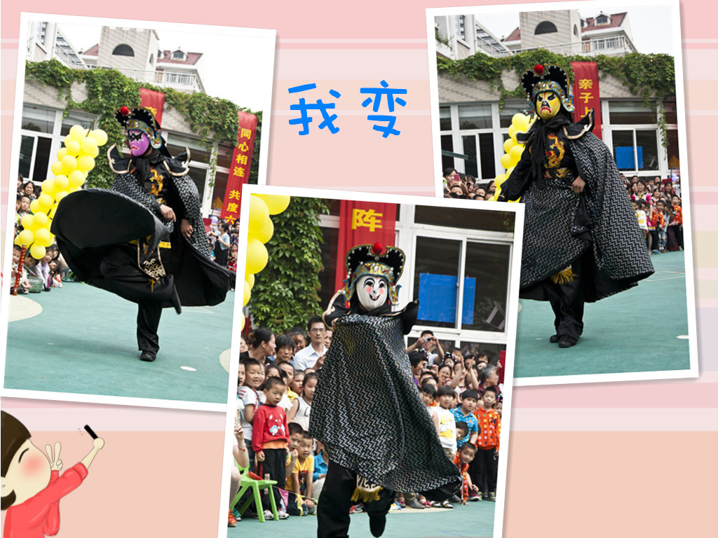 哇,还有变脸表演呢,这个叔叔可厉害啦,好棒哦。