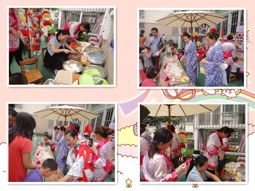 游园会开始啦!我们忙着游园,辛苦了爸爸、妈妈们为我们做美食啦!园长妈妈们也来帮忙一起做寿司啦!味道一级棒!