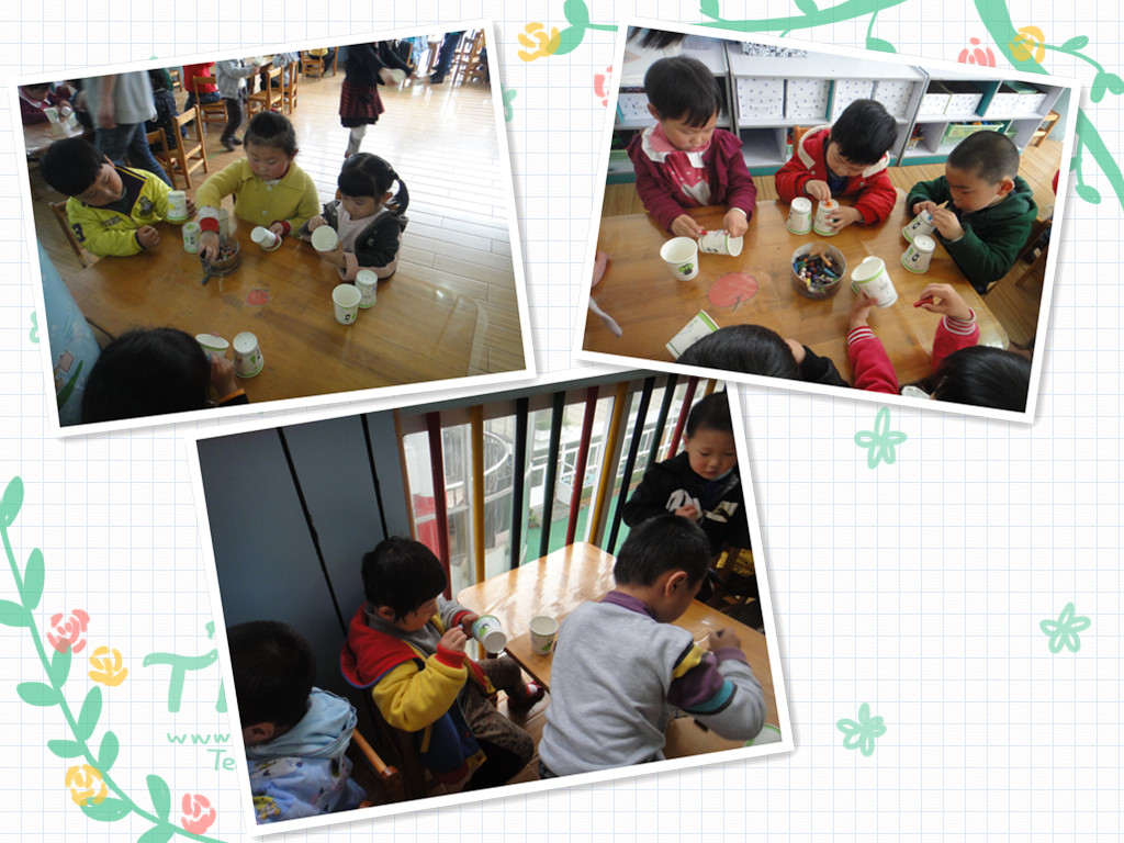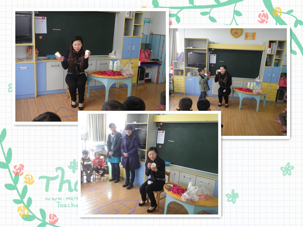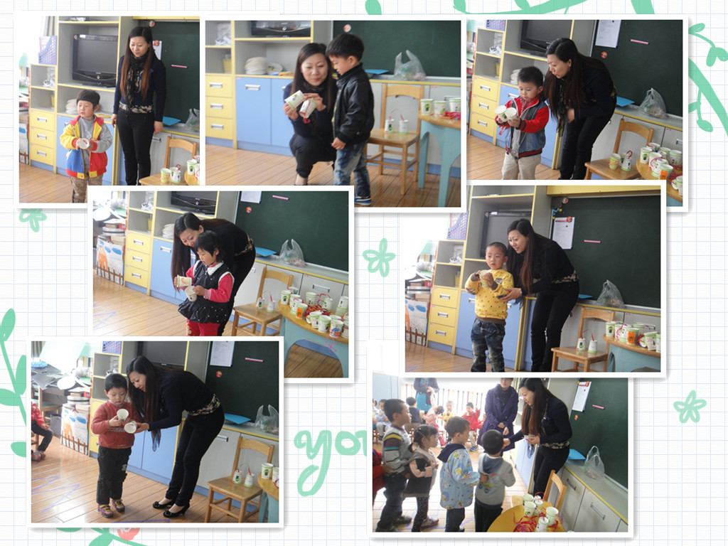 这个电话是用纸杯做的哦!羊羊妈妈在给我们示范呢!
