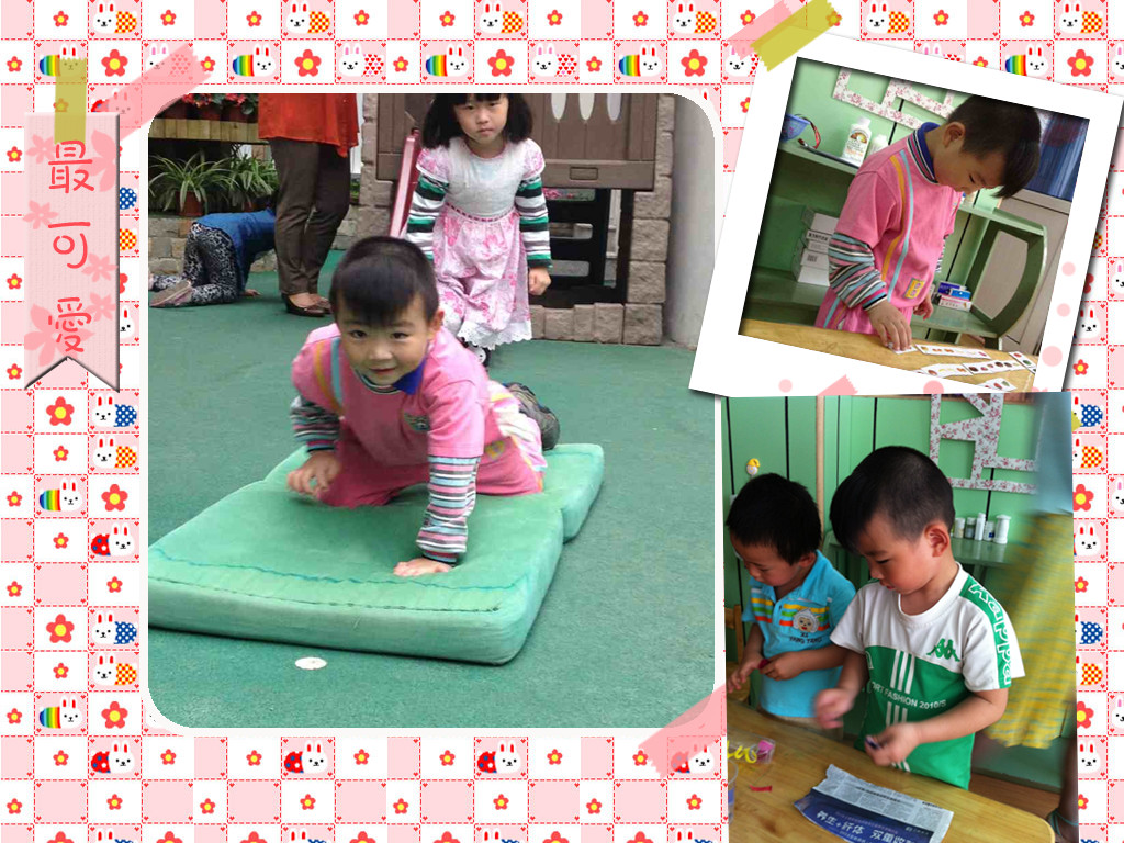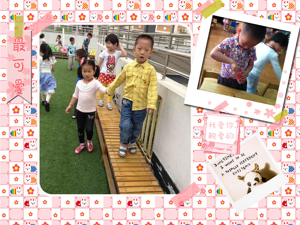 幼儿园里真好玩,每天我们都会有各种各样的活动,前不久我们还和中班的哥哥姐姐们一起玩游戏的呢! 瞧,中班的姐姐牵着我在走平衡木呢! 看我做的海底世界好看吗。