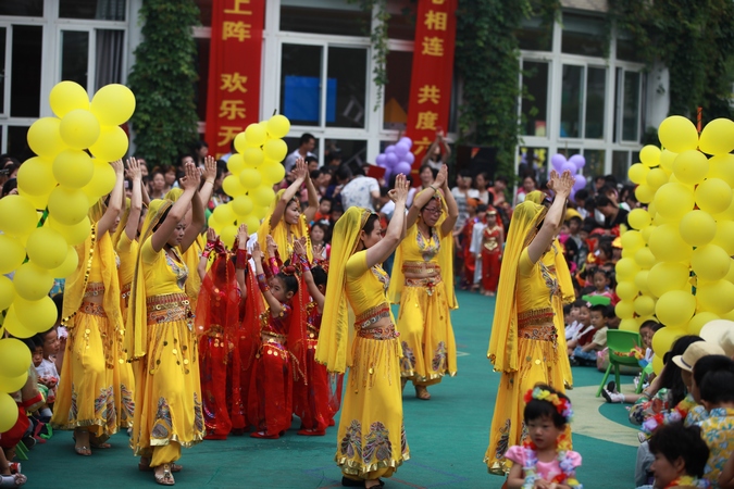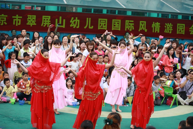 结合我园班级实际情况,我们以独具风情特色的十八个国家或地区(日本、韩国、台湾、荷兰、夏威夷、印度、西班牙、阿拉伯、俄罗斯、中国、泰国等)为切入点,通过环境、服装、美食、表演、游戏等特色活动,帮助幼儿了解各国独特的风情文化,进一步了解“儿童节”的国际意义。