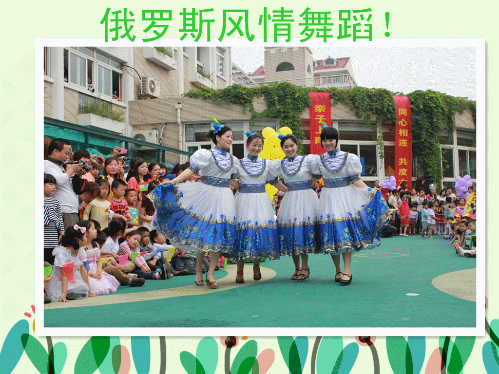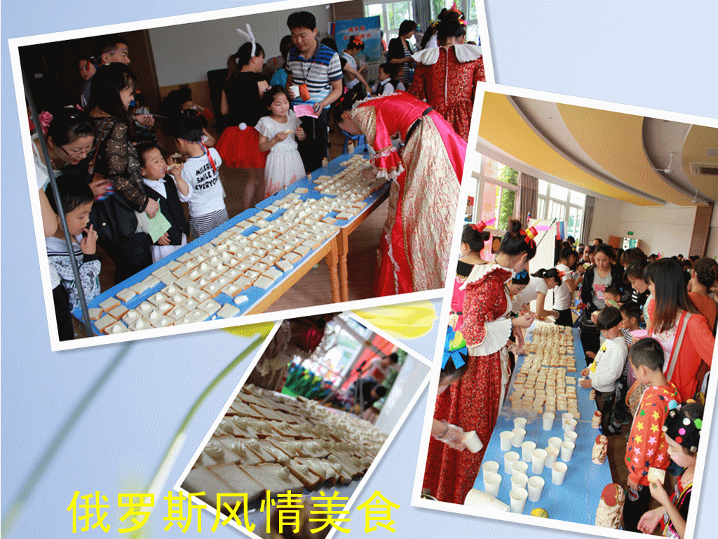 一日儿童节,今天爸爸妈妈和我一起过节,我们穿着漂亮的班服,爸爸们和男孩子带着头绳、妈妈们和女孩子带着小礼帽,真有节日的气氛啊!我们班是俄罗斯风情园,有漂亮的俄罗斯慢摇、美味的俄罗斯美食、还有班级特供的儿童套餐,哈哈,好吃又又好玩。