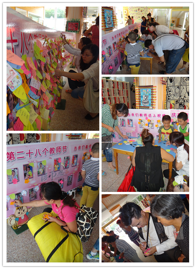 在全国第二十八个教师节来临之际,我园全面启动了尊师、爱师等一系列活动,翠幼的家长们在节日里积极参与我们大厅的爱师长廊活动,为孩子们、家长们喜爱的老师送上了温馨的祝福!让所有的翠幼教师倍感幸福!