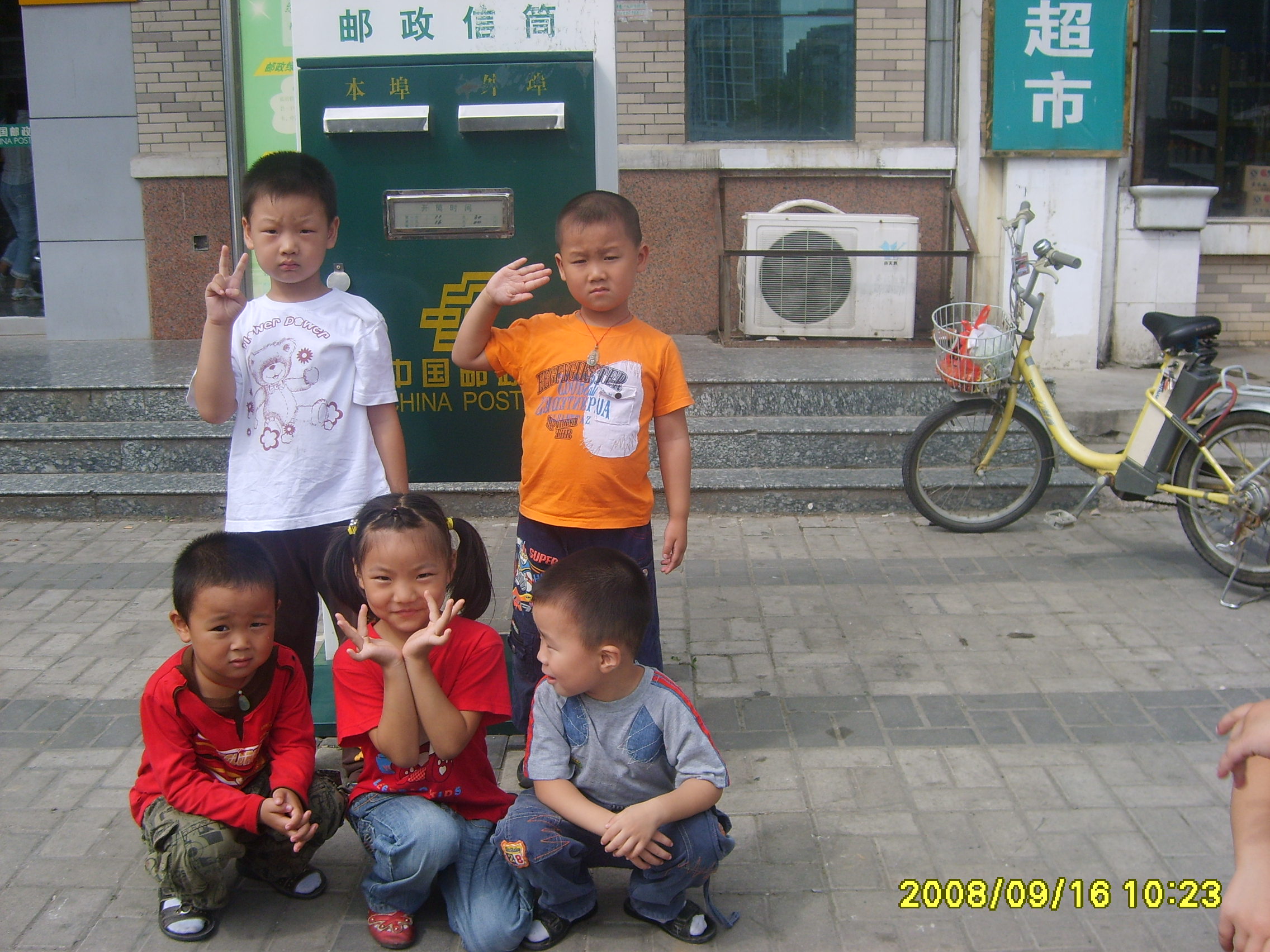 和邮筒来张合影吧! 瞧~~我们的手势!!
