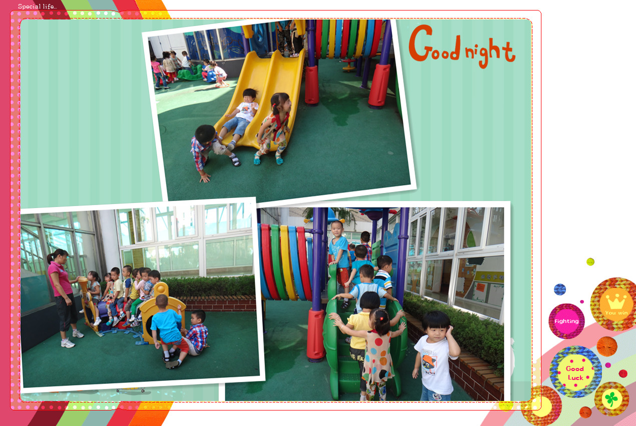 今天我知道了玩滑滑梯的时候要排队的,表现还不错吧!