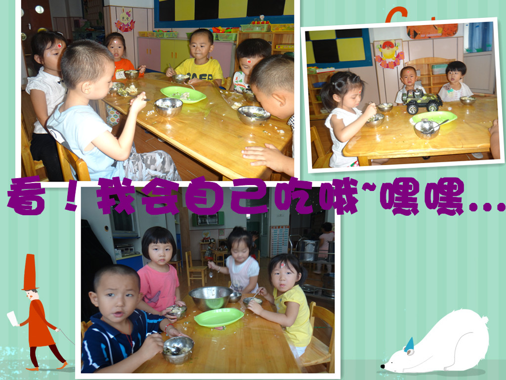 第一次在幼儿园吃饭,感觉不一样,都是自己吃的哦!