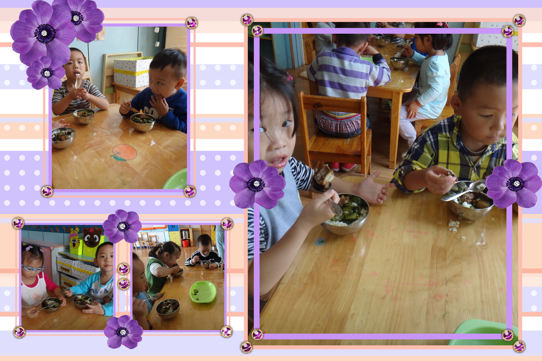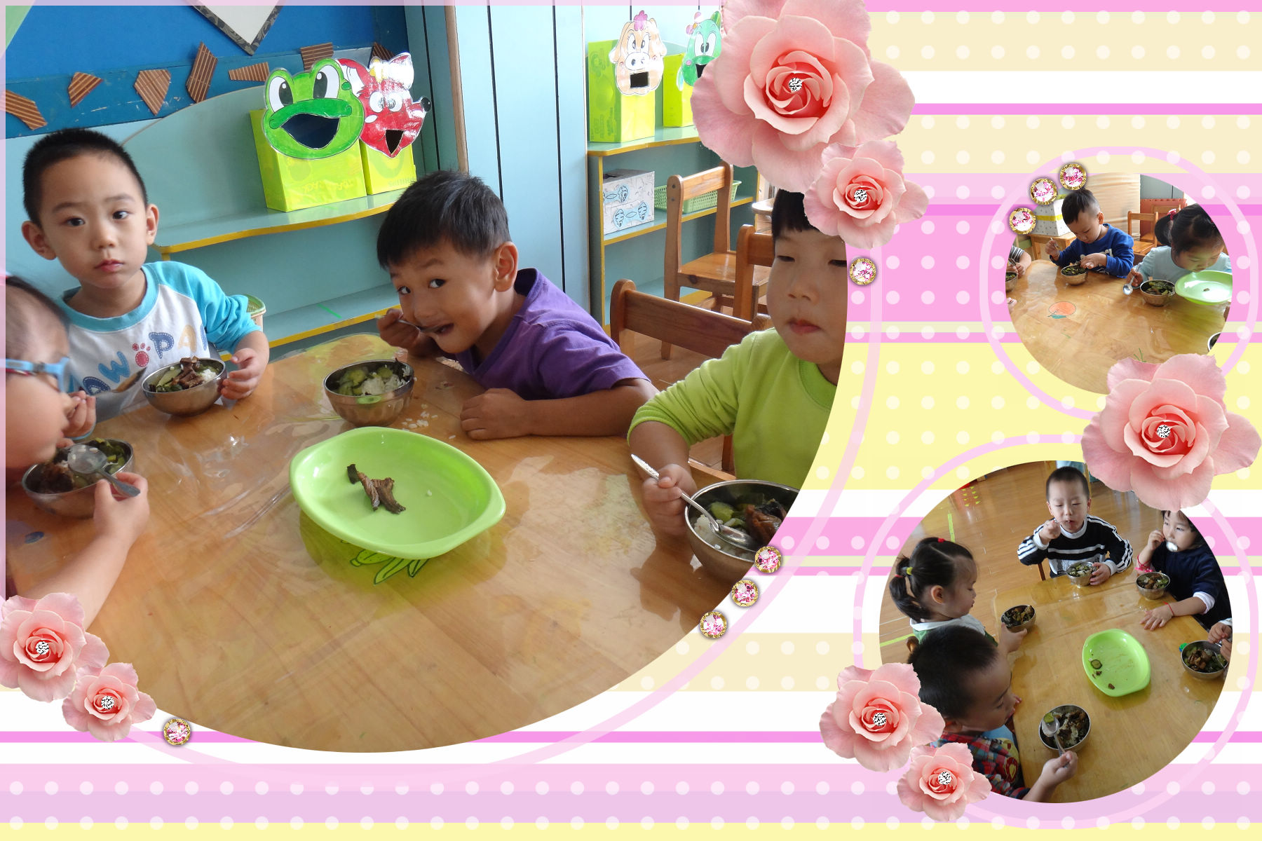 瞧我吃的多香啊!幼儿园的饭菜真好吃!