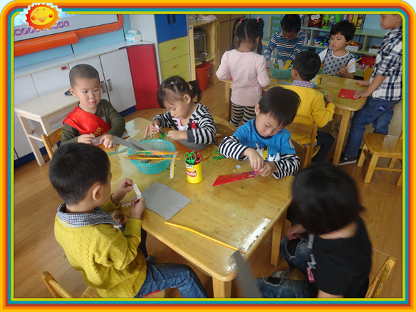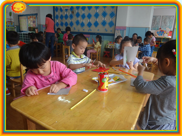 看!每个宝宝都拿起了小剪刀,小心翼翼的为我们的国旗裁剪着“外衣”,生怕剪坏一点点,可真是爱国的好宝宝!