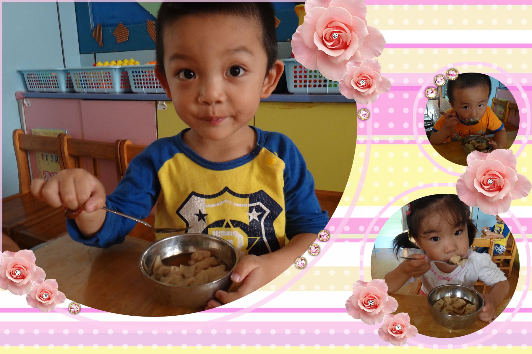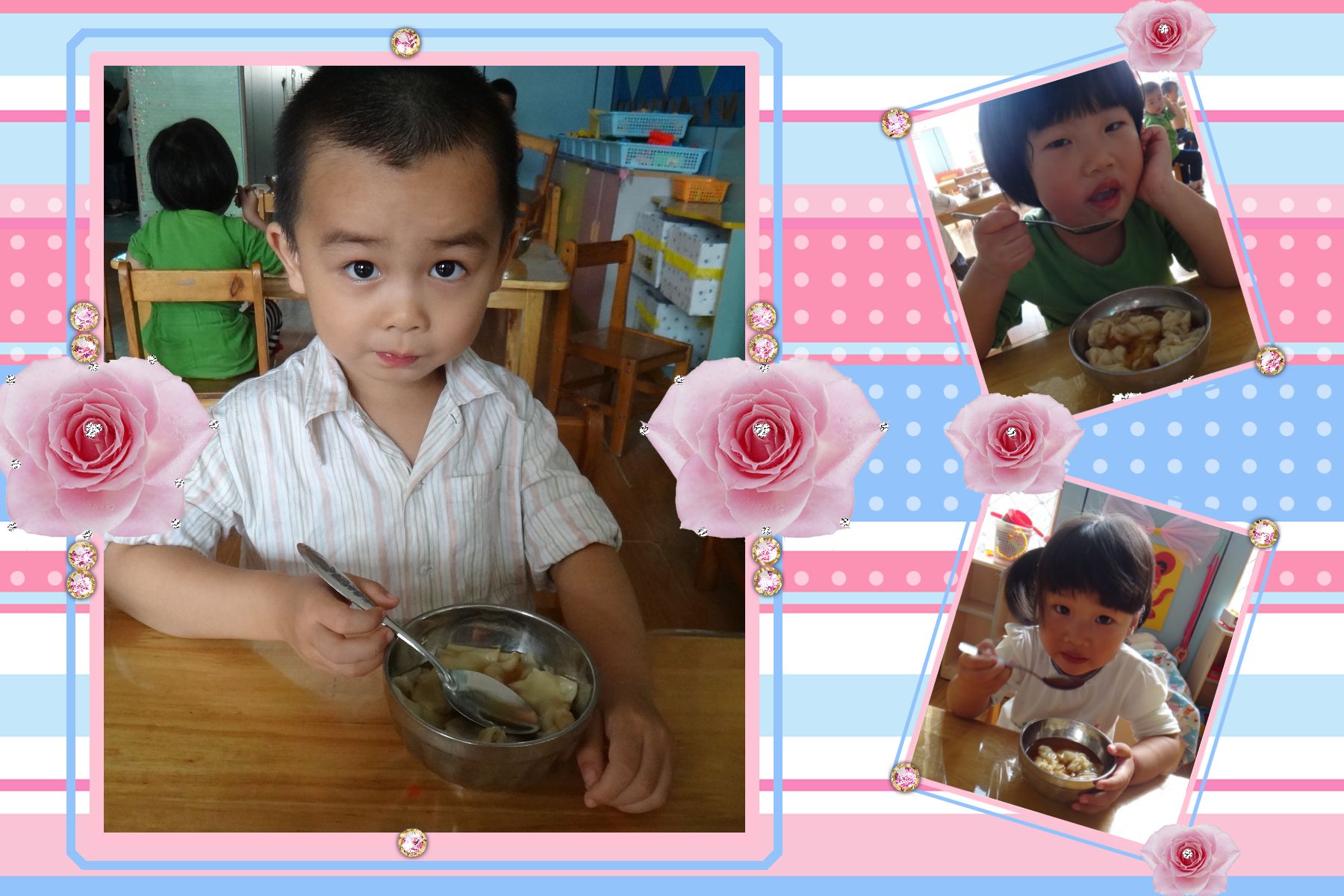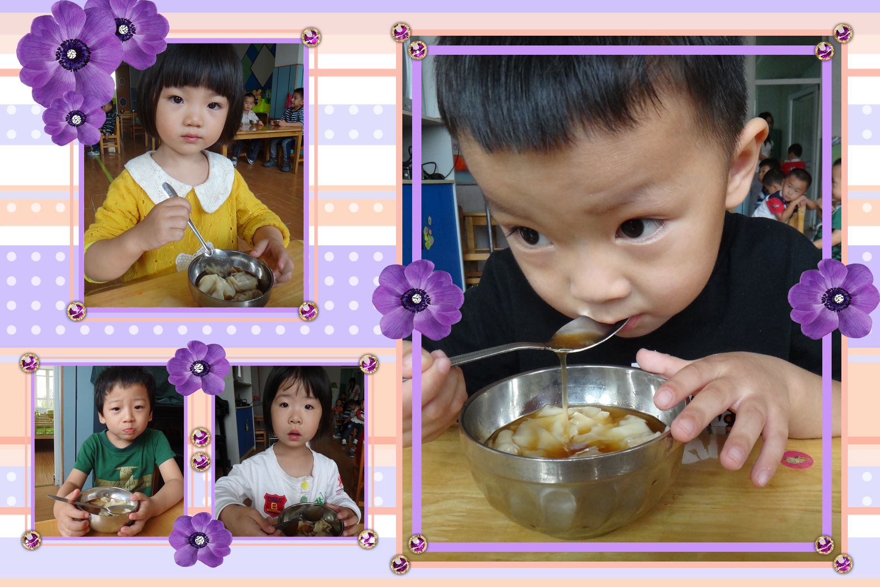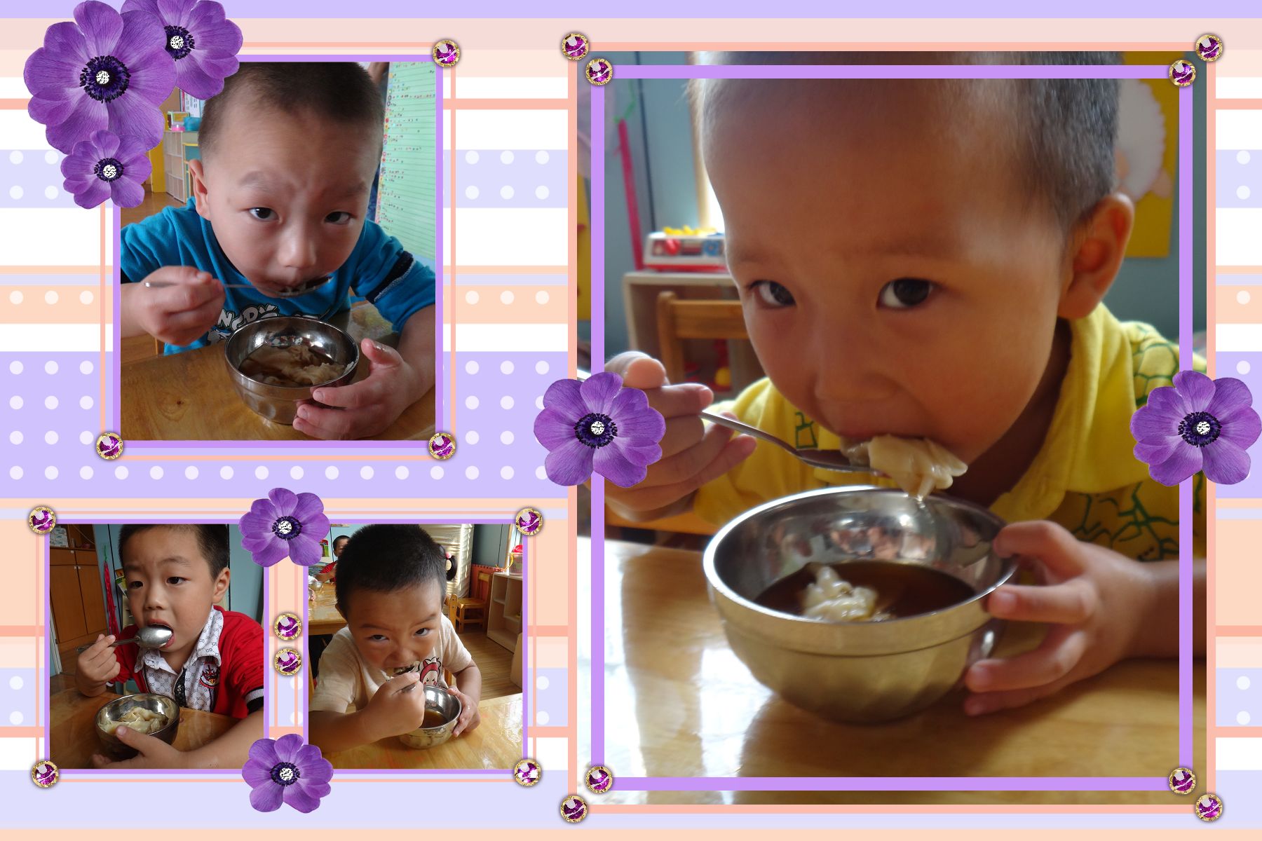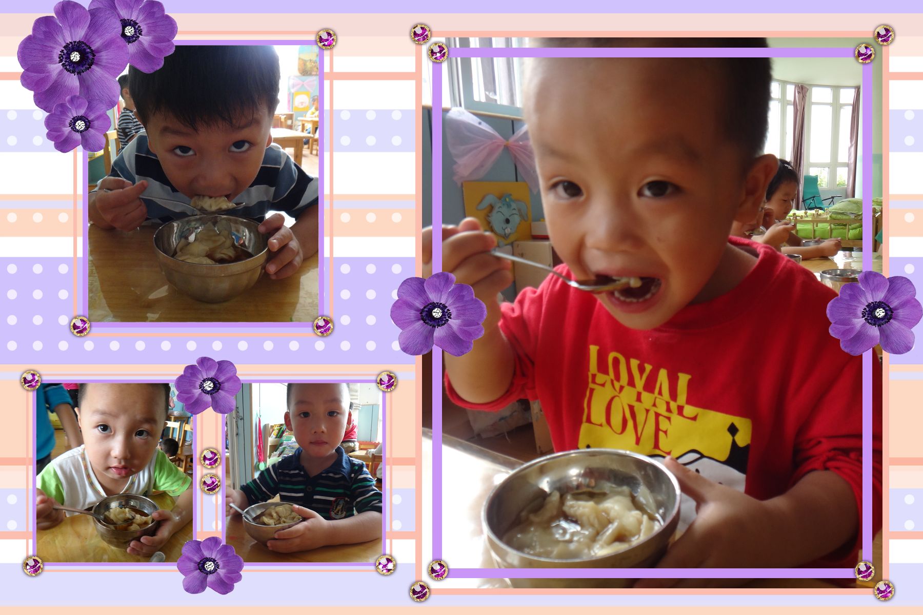 今天是星期一了,小朋友们都开开心心的来上幼儿园。早上有个小朋友告诉我说:“老师,我最爱吃幼儿园的小馄饨了,今天有吗?”我笑了,摸摸他的小脸说:“今天我们下午的点心就是小馄饨哦!”宝宝开心的不得了,瞧,点心来了!哎呀,你们慢点吃啊,怎么就吃得这么香呢?看来幼儿园的小馄饨很受小朋友们的欢迎啊!