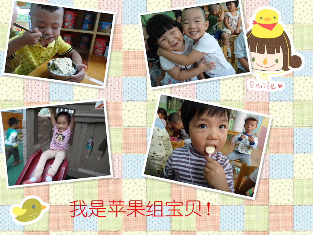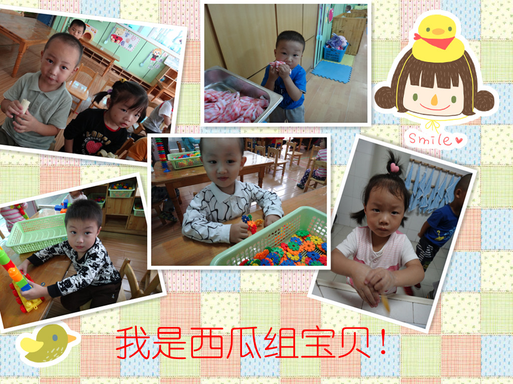 我是小一班的宝贝,我们班一共有35个宝贝,我们有三位老师,从此以后我们就是相亲相爱的一家人了!我们分组了,猜猜我是哪一组的宝贝?是苹果组?是梨子组?还是。。。。哈哈,看照片吧!你就会知道啦!