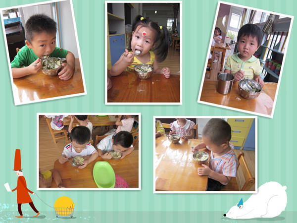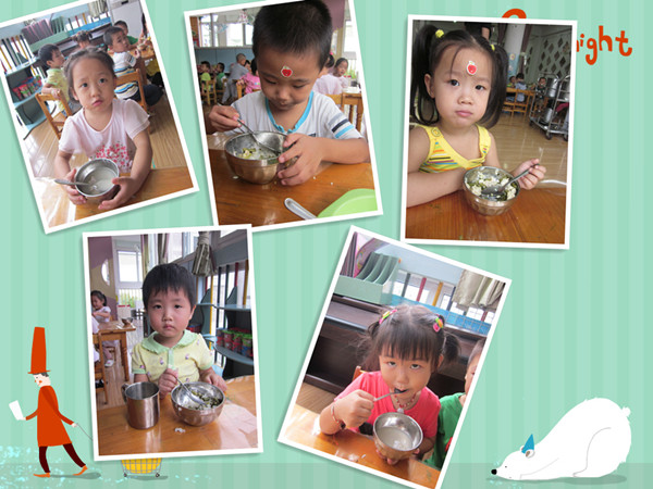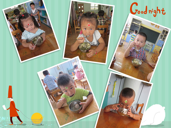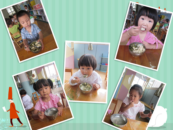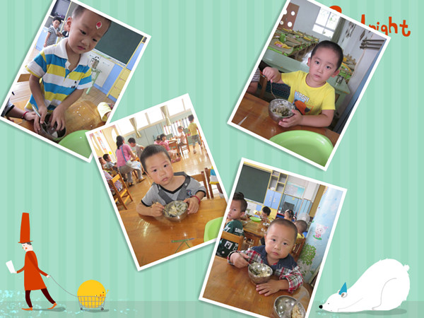 第一天在幼儿园用餐哦~ 瞧我们个个都很棒,不用老师喂也能吃干净!
