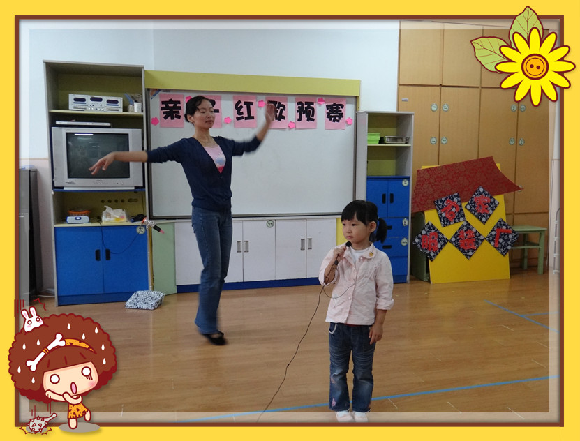 看我,是不是很有歌星的范?还不快鼓掌啊 这首《映山红》是我成名曲哦,我在用我全部的感情歌唱呢!
