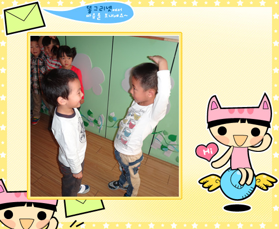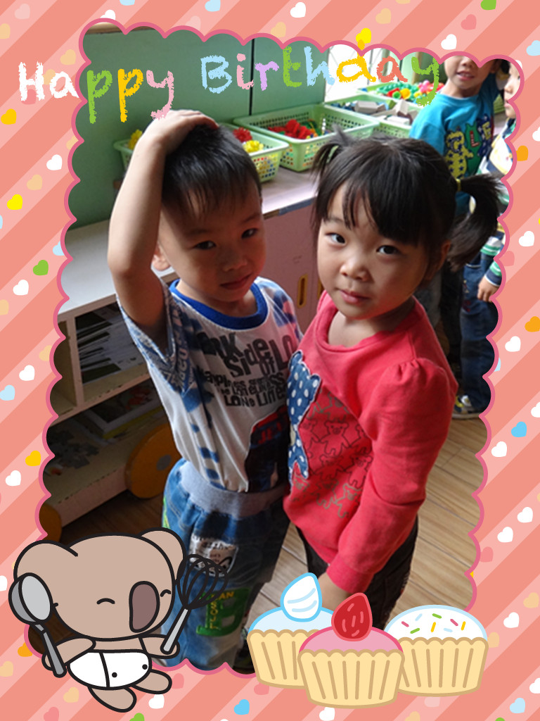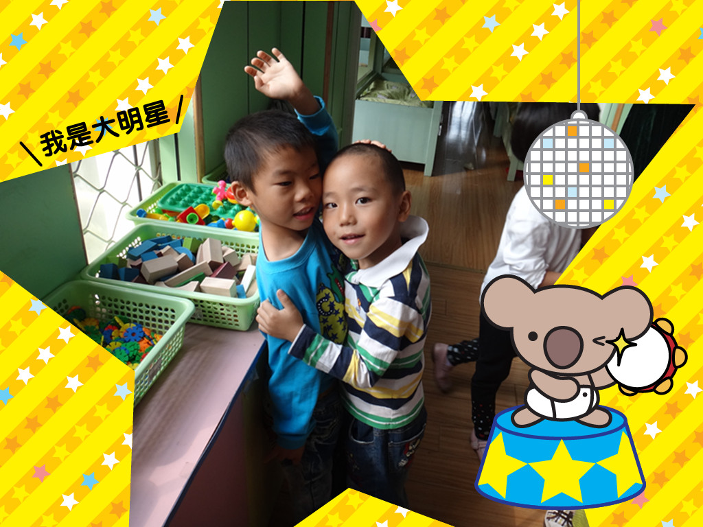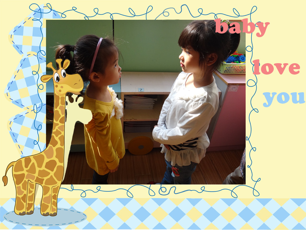 我们两个好像一样高哦! 鑫鑫站直了哦!