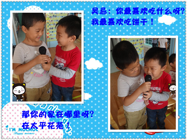 今天是2012年10月9日,我们班举行了《采访朋友》的主题活动,宝宝们热情高涨,做起小记者来有模有样的,一起来看看吧!