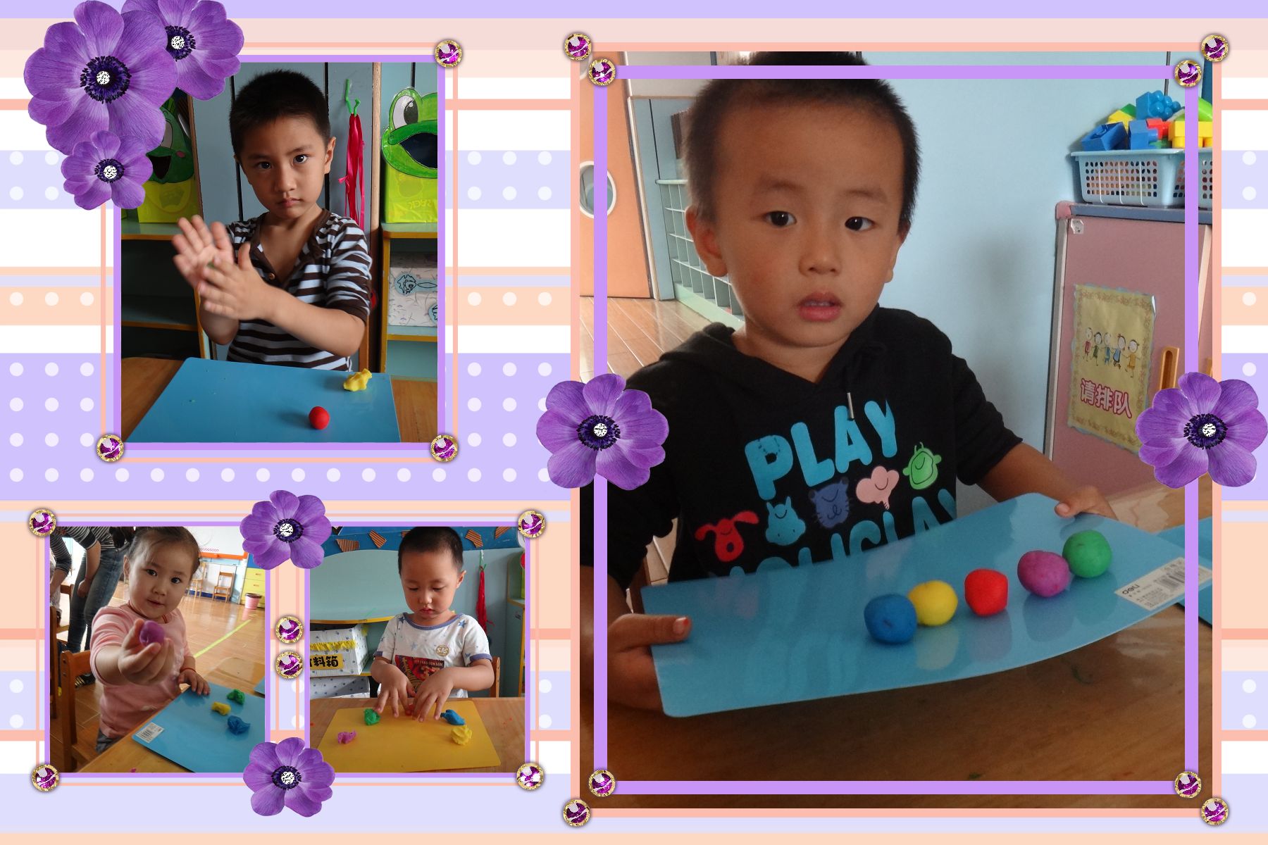 小六班这学期的特色活动是开展丰富多彩的泥工活动。小班的幼儿特别喜欢玩油泥,在兴趣的基础上,我们有意识的进行揉,捏,搓,压等技能的训练,锻炼了他们的小手,促进了小肌肉的发展。从简单的元宵做起,将不同颜色的油泥进行揉一揉,搓一搓的方式,做成圆圆的五彩小汤圆。小朋友们玩得很开心,而且也出来了很多的作品,下面一起来欣赏我们第一次的特色油泥活动的精彩时刻吧!