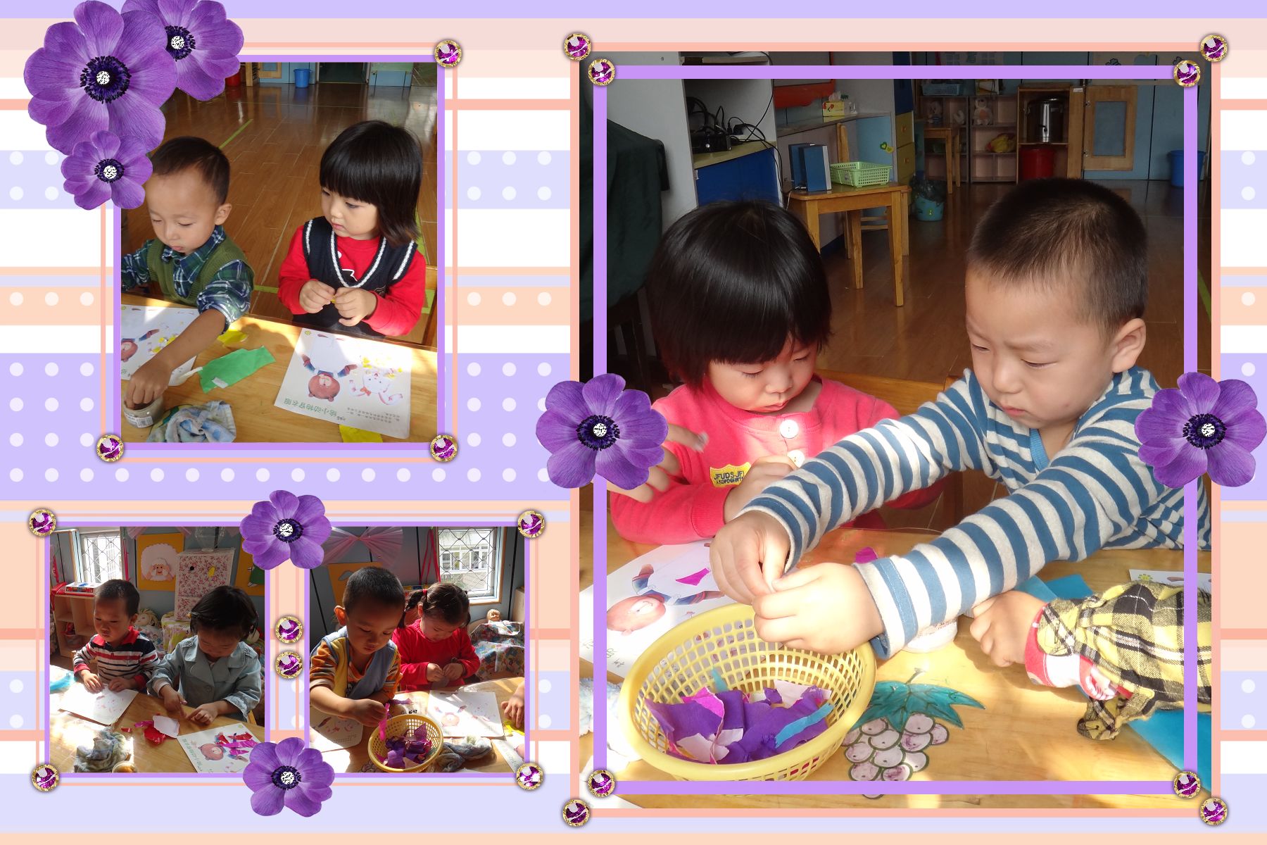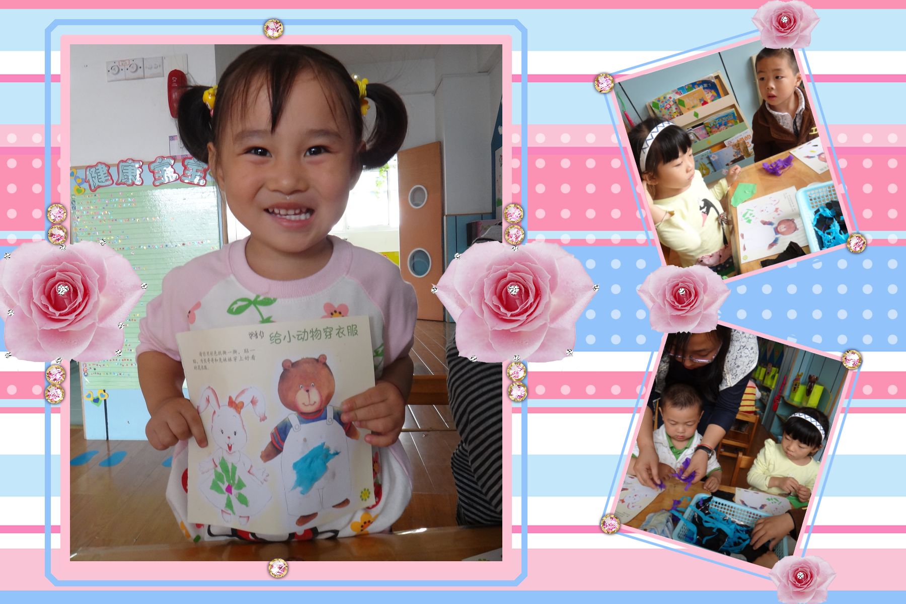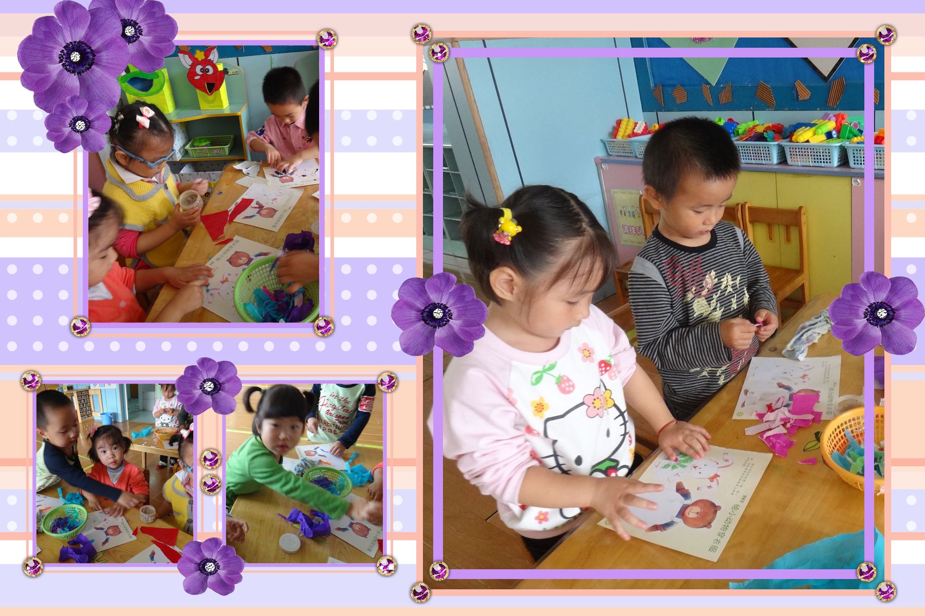 今天我们开展了一节美术活动,给小动物穿衣服,选择漂亮的彩纸,进行手部肌肉的锻炼的撕贴,给小动物们穿上好看的衣服,小朋友兴趣勃勃的开展着,充满了喜悦之情,我们一起来看看当时的情景吧!
