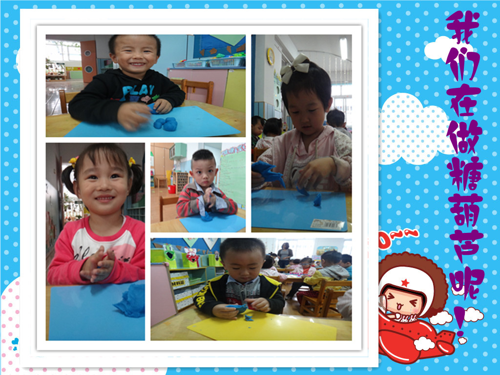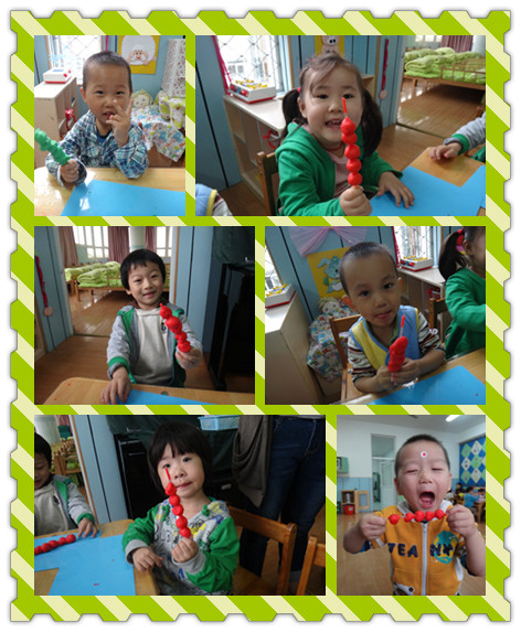 今天是周二,又是我们开展特色活动的时间了,我们今天开展的是:做冰糖葫芦,将大块的油泥很成五个小块,再将每个小块油泥都搓一搓,揉一揉,变成一个个圆圆的小冰糖葫芦,然后将它们一个个串在吸管上,变成好吃好看的冰糖葫芦喽!小朋友们玩的都非常开心,这一天也是大家期待的日子哦!我们一起来看看我们制作的过程和成果吧!