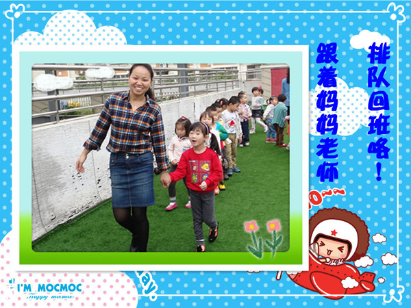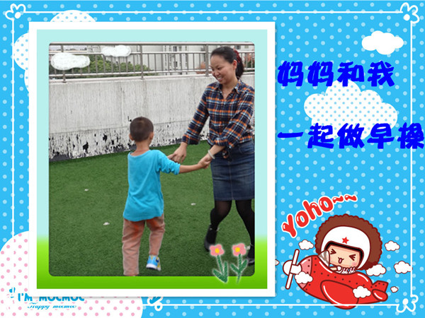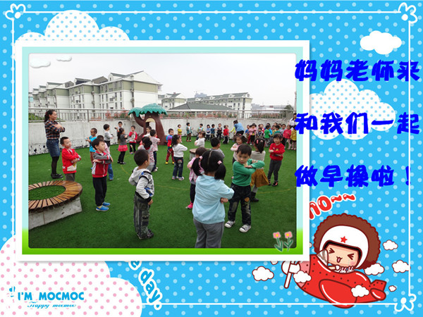安允鹏妈妈老师首先带领小朋友们一起晨锻,一起做早操,小朋友们都很认真哦!