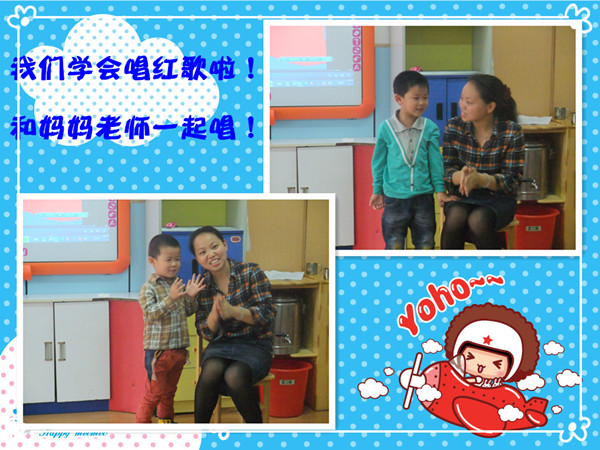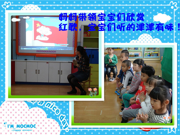 接下来,妈妈老师给宝宝们带来了好听的红歌,好看的视频,看!宝宝们都入神啦!好多宝宝还学会了新的红歌,都积极的请妈妈老师让自己表演呢!
