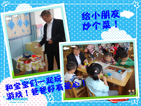 在浓浓的红歌氛围里,爸爸老师走上讲台带领宝宝们一起玩区角游戏,快来看看,我们的爸爸老师可是很专业的哦!