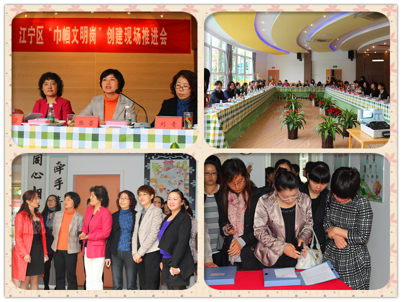 现场会上市妇联领导首先为市级“巾帼文明岗”颁发了铜牌,并认真听取了毛应翠园长用生动的创建纪录片以《巾帼争辉,和美翠幼》为主题的精彩创建汇报,真切的感受到翠幼“展巾帼风采、树育儿形象、创和美翠幼”的浓郁创建氛围、扎实创建过程和显著创建成效,随后开发区污水厂中控室及通胜客运公司站务组也相继交流了自己的创建过程。市妇联发展部领导充分肯定了江宁区女子团队在“巾帼文明示范岗”创建工作中取得的成绩,认为我区创建取得了新成绩,实现了新发展,特别高度赞扬了翠屏山幼儿园的创建工作富有特色,创建内容丰富多彩,同时也希望各单位要提高巾帼品牌意识,大力推动“巾帼建功”活动向纵深进展。最后区妇联领导充分肯定创建活动为广大女性提供了施展才华的舞台,促进了广大妇女素质的提高,同时希望“巾帼文明岗”创建活动要进一步与时俱进、深化提高,把我区“巾帼文明岗”创建工作推上一个新台阶。
