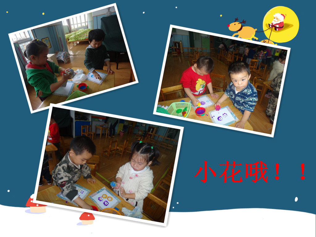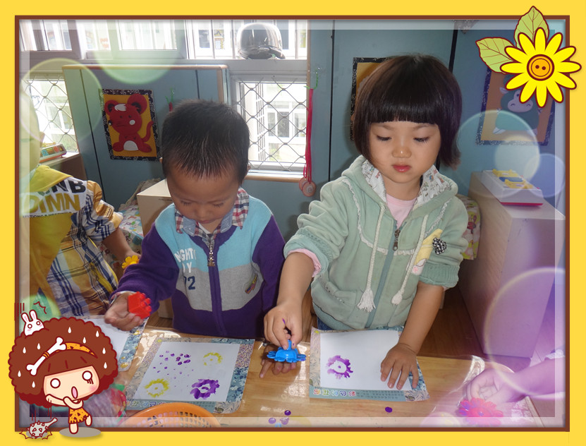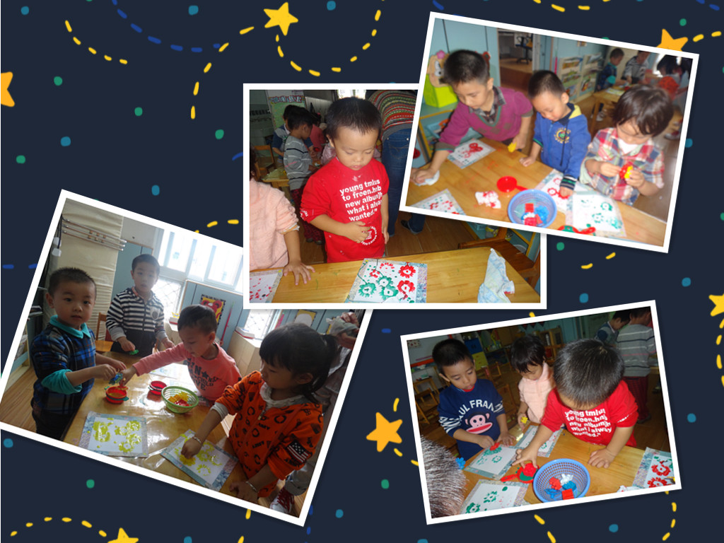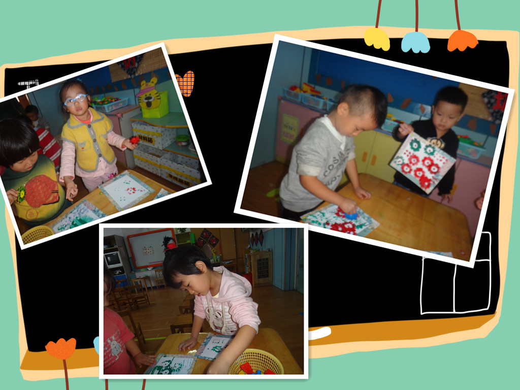 在新的主题活动开展之前,我喜欢主题的最后一节活动:美丽的花布,让小朋友们感受到了印染的神奇与乐趣!小朋友们使用各种玩具模型,沾上各种美丽的颜色,给我们白色的花布上印上好看的图案,做成美丽的花布。小朋友做的可开心了,认真的在操作,都想要有一块美丽的花布呢。