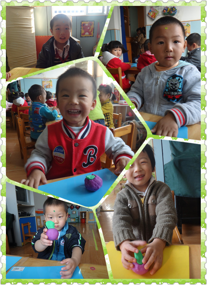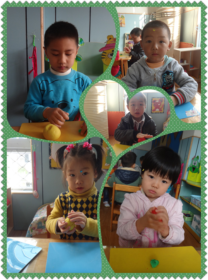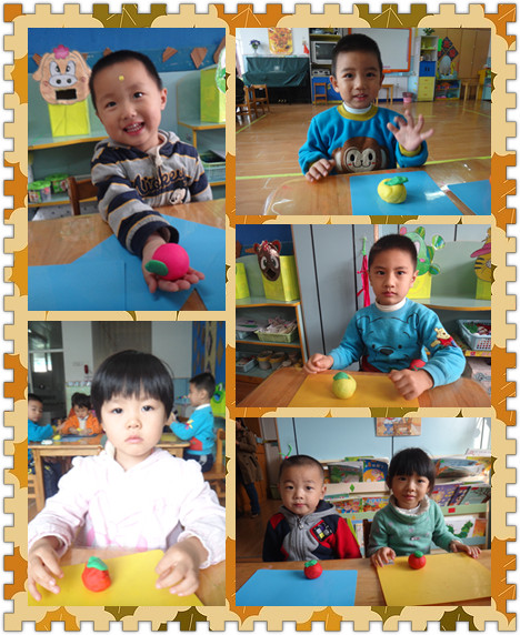 每周二的特色泥工活动如期开展了,小朋友都很期待,也十分的兴奋。今天下午吃的点心是苹果,小朋友观察了苹果的形状和主要特征,于是在老师的指导下,小朋友们利用各色的油泥制作了一个个漂亮的小苹果哦,看的就很香哦!快乐与活动同行!!
