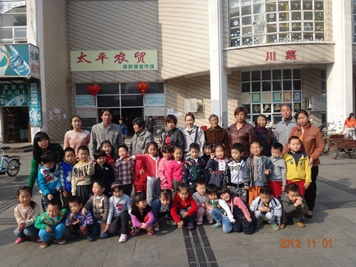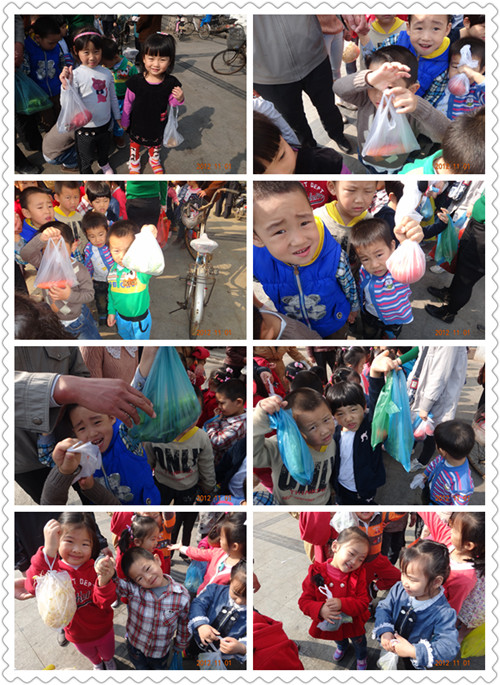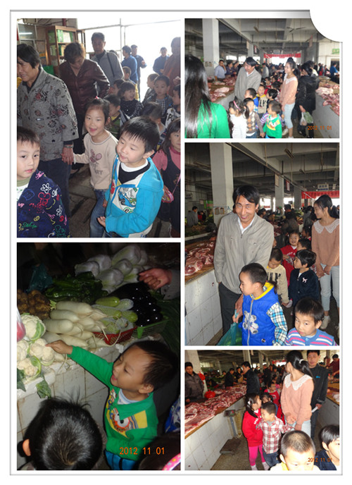 菜场是小朋友和爸爸妈妈爷爷奶奶经常去的地方,但是对于买菜的认识还是比较少的的,今天我们每个人身揣2元钱,自己当家作主去买菜。。。菜场这么多蔬菜,该买什么好呢?我来试试吧! 我们出发咯!有秩序的像一名中班的小朋友向着菜场进发。。gogogo 到了菜场门口,我们一起拍了一张集体照留念,这是我们第一次去菜场买菜,好兴奋!! 到了菜场的门口,我们学会了菜场的功能划分,知道了用什么话来和叔叔阿姨交流买菜,马上就要进去参观实践一下了 菜场的东西可真多啊,有好多我认识的呢!好像买呢 我们的战利品!怎么样我们像不像一个自己的小当家啊? 看看我们的!开心的笑脸已经显示出我们多开心了,买菜也很辛苦,回去要谢谢爸爸妈妈