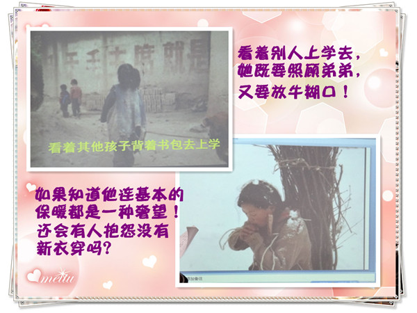 接下来,由蒋闻和的妈妈为我们展示了贫困山区孩子们艰难困苦的生活,一张张照片,触人心弦,蒋闻和妈妈的解说感人至深!