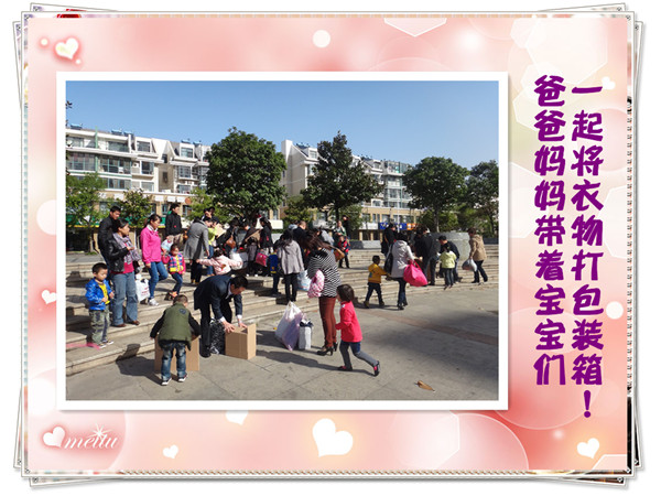 今天是2012年11月4日,今天我们班的家长和小朋友们在早上8:30在我们班准时相会,一场爱心捐赠活动就此拉开序幕!家长和孩子们帮忙收集自己暂时不穿的衣物鞋袜,今天我们将会把这些衣物打包,和孩子们一起赶往邮局,将这些物品寄往云南山区,为那里的孩子们献上一份爱心,一份温暖!