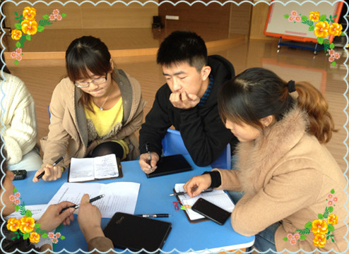 - 2012年11月5日,我园市级课题研究工作进行第一阶段工作——讨论拟定调查问卷!本次活动,主要由陈娟园长、徐凌燕老师和熊进婷老师带领我园年轻教师围绕“当下幼儿园美术教育现状”进行了激烈的讨论。