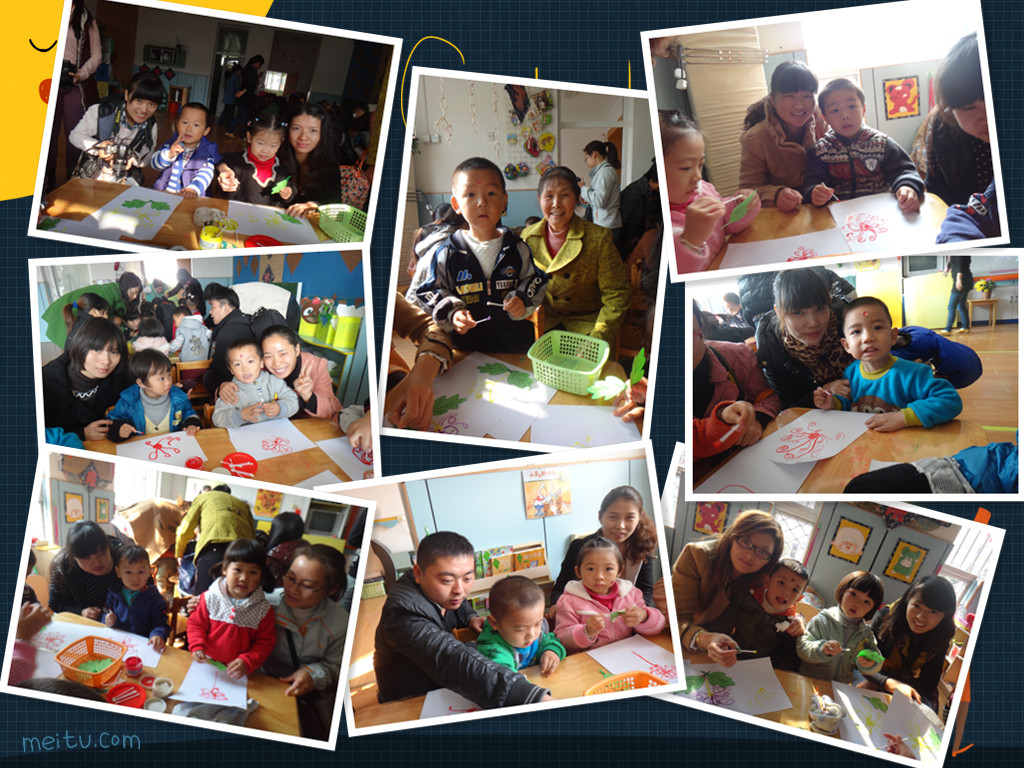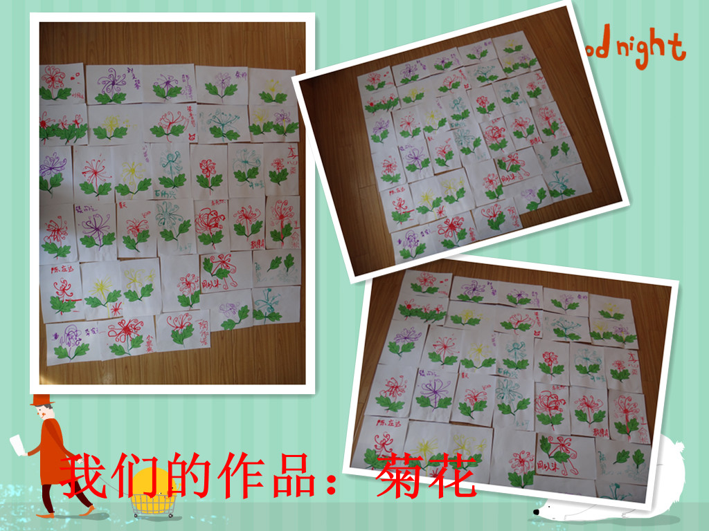 今天是孩子们最开心的一天,因为可以跟爸爸妈妈一起上幼儿园呢!今天是小班家长开放日,我们准备了一节美术活动:美丽的菊花。小朋友们认真的听老师上课,积极举手回答问题,表现的可好了,爸爸妈妈乐开了花!美丽的菊花活动,是亲子美术活动,在爸爸妈妈的帮助下,用老师提供的棉签,树叶,颜料,浆糊等工具合作完成。用棉签沾上颜料画菊花,再贴上绿色的叶子,效果很不错哦!我们一起来欣赏一下我们的作品吧!真的很漂亮哦!