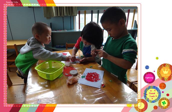 看~我们在撕贴“苹果”呢,你们看着想吃吗???