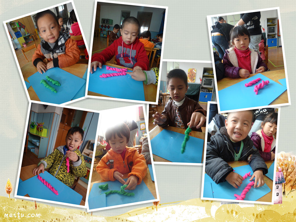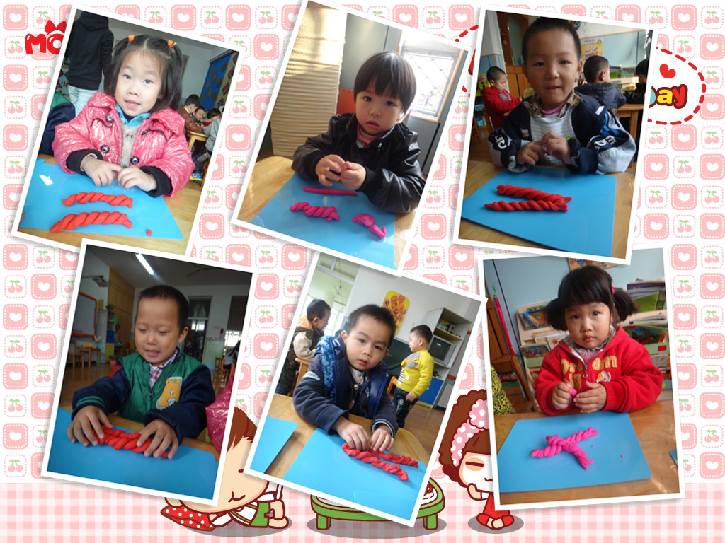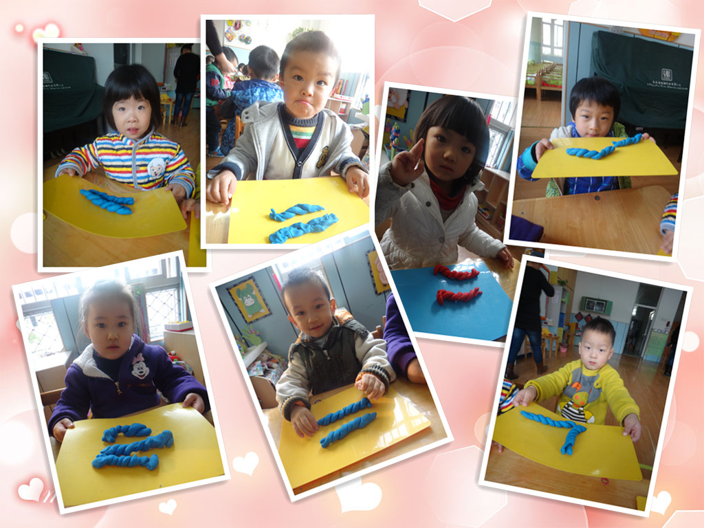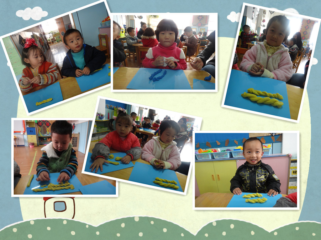 消防演练之后,我们继续开展了每周二的特色油泥活动!我们今天要学做的是好吃的麻花!在介绍了麻花的样子和特点之后,示范操作麻花的制作步骤,小朋友跟老师认真的空手练习。最后,我们实践操作,每个人都很棒,我们来看看小朋友们的作品吧!