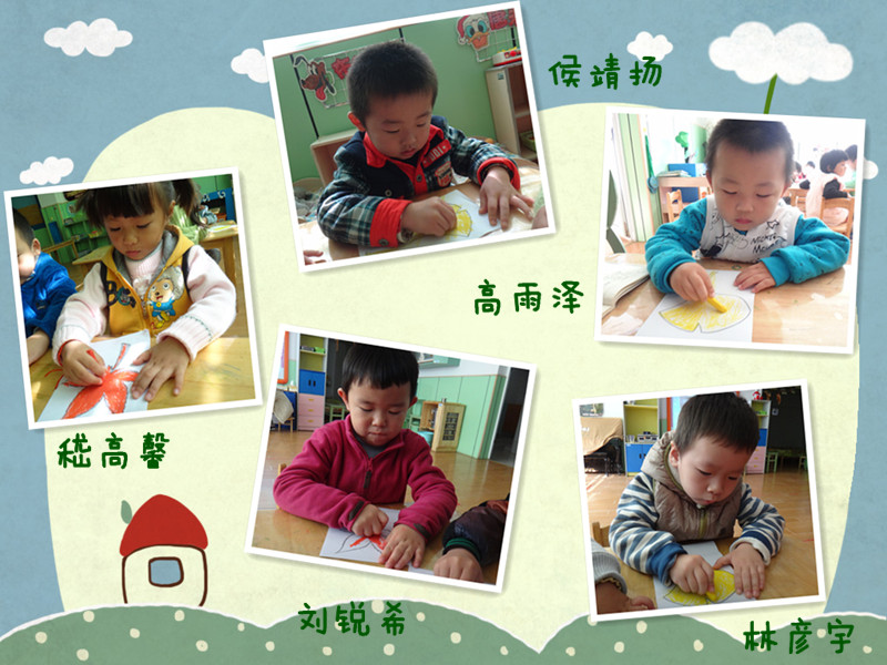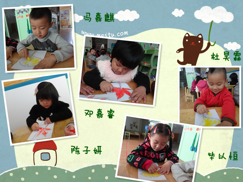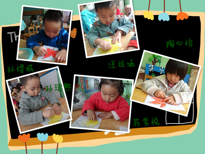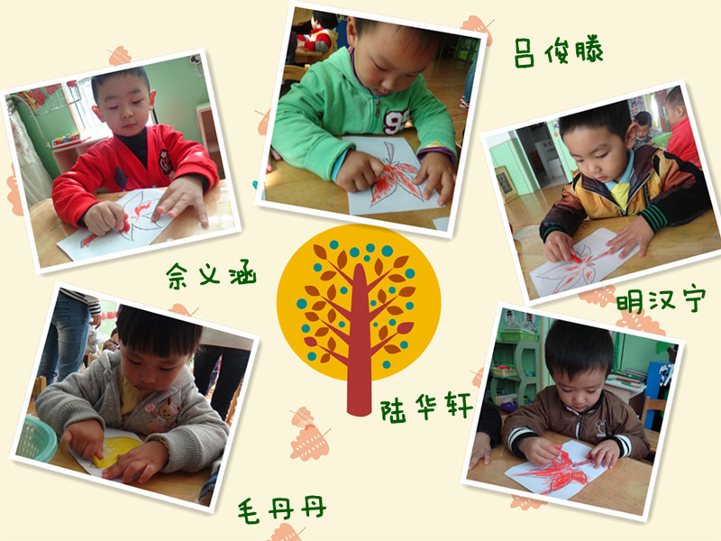秋天是一个美丽的季节,树上的小树叶都变颜色了,有红颜色,黄颜色,漂亮极了,瞧,我今天也给树叶宝宝画上了一层美丽的颜色。