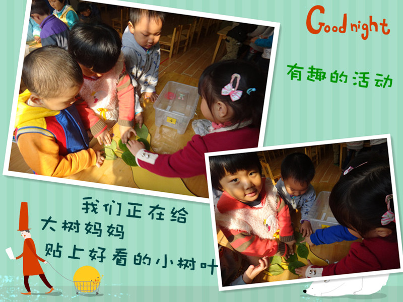 哇!这里有好多小树叶呀,她们都走散了,让我们来把小树叶宝宝送回到自己的大树妈妈身边吧!