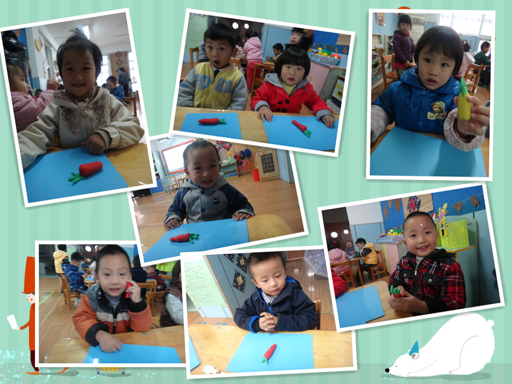 今天是我们小六班第一次家长助教活动!我们班王文婷小朋友的妈妈,给我们带来了一节生动的泥工课,做胡萝卜。王妈妈可认真了,既温柔又能干,小朋友们可喜欢她了。为了感谢王妈妈,小朋友都很认真的做着胡萝卜,作品的展现是对王妈妈最大的激励!王妈妈也给小朋友们带来了小礼物,在欢声笑语中,我们学到了本领,也收获了快乐!