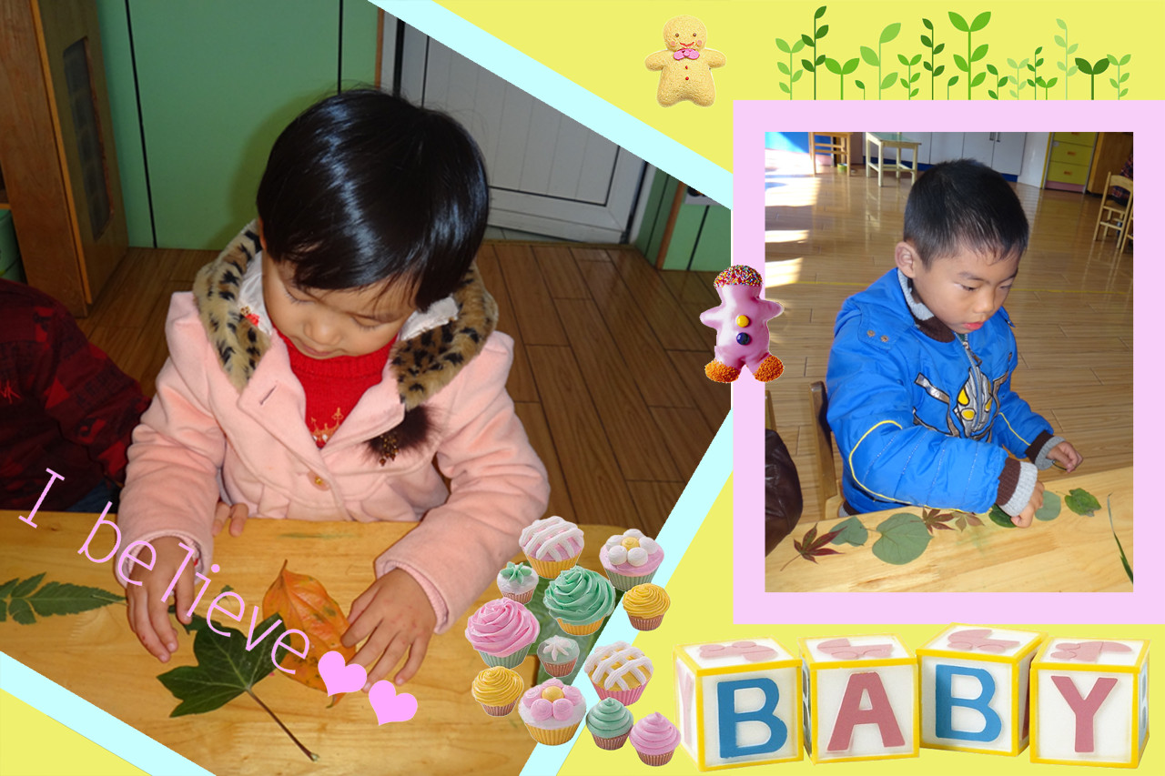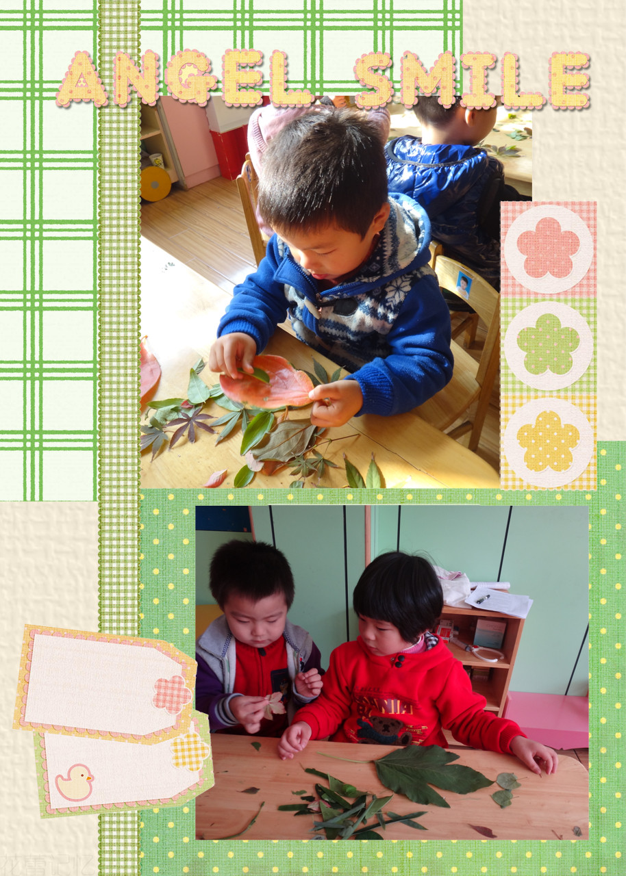 秋天到了,树上的树叶都落下来,那这些树叶可以用来做什么呢?哦,原来我们的树叶还可以用来作画啊!下面看看我们中二班的宝宝们制作树叶拼贴画吧!我们在拼各种小动物哦!瞧瞧我们拼的像吗?