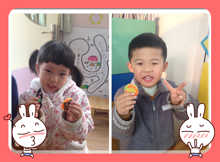 今天上课,我们用油泥做出了好吃诱人的饼干!你瞧我做的饼干漂亮吗!想不想带回家吃?