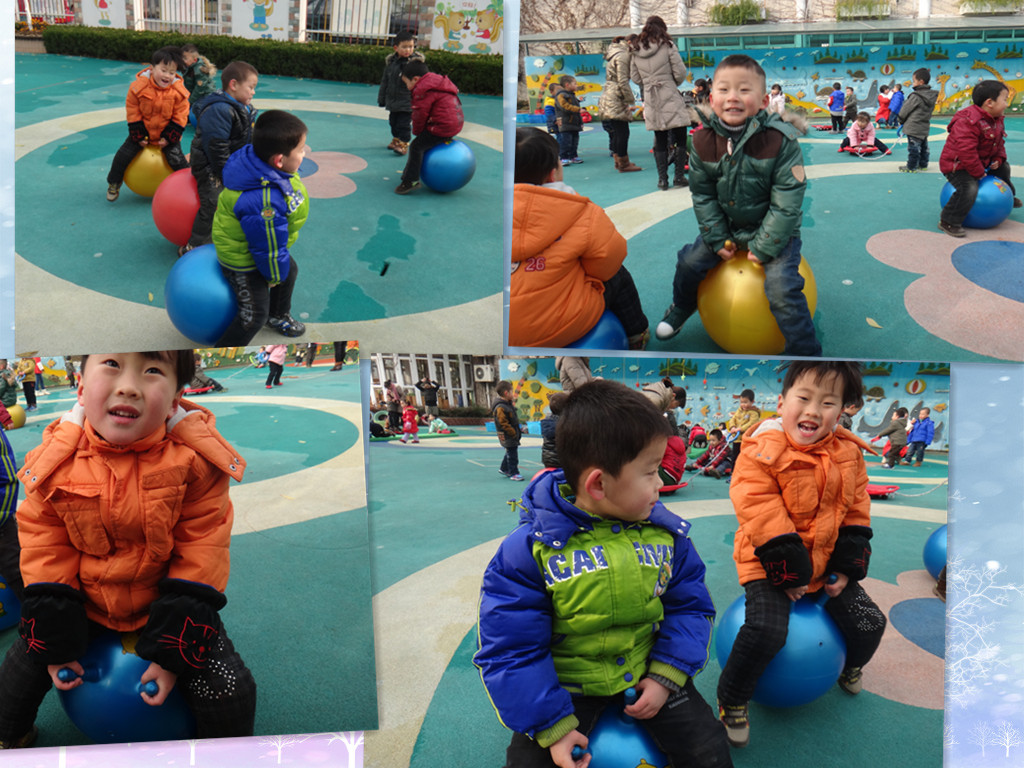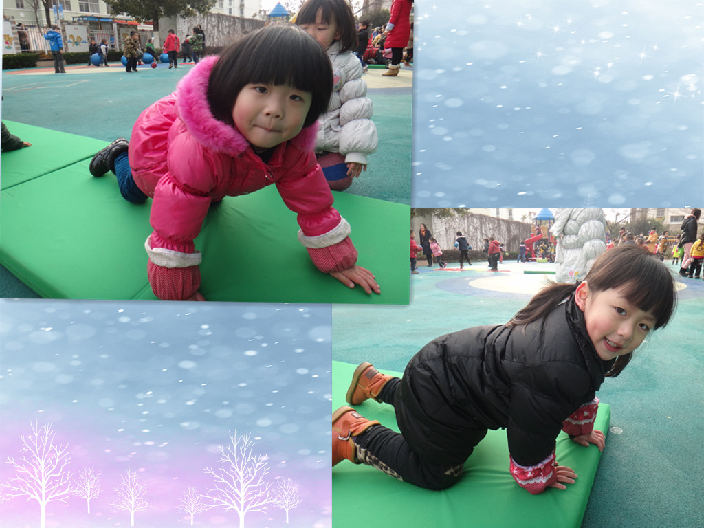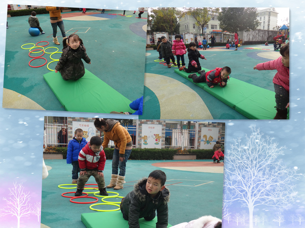 冬爷爷来了,为此我们组织幼儿每天坚持短跑、早操及晨间锻炼。让幼儿知道想要有一个健康的身体,就要多做运动,加强锻炼,敢于面对寒冷,这不仅培养了幼儿良好的意志品质(不怕寒冷,坚持锻炼),并且使孩子们的自理、自立的能力得到培养,同时在穿脱衣服的过程中培养了孩子们互相帮助,团结友爱的情感。我们都希望每个孩子都有一个健康、快乐的童年。