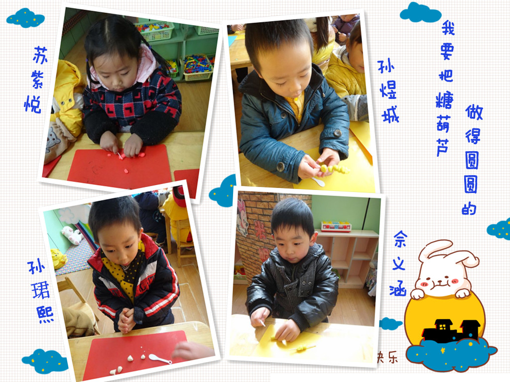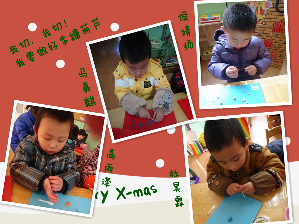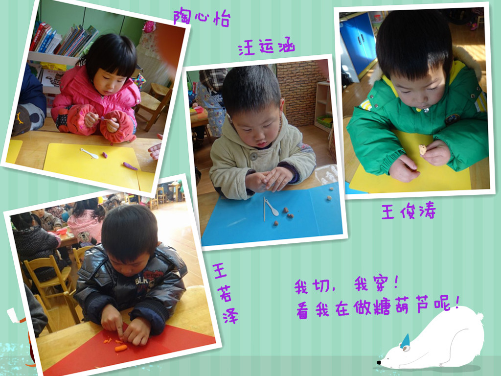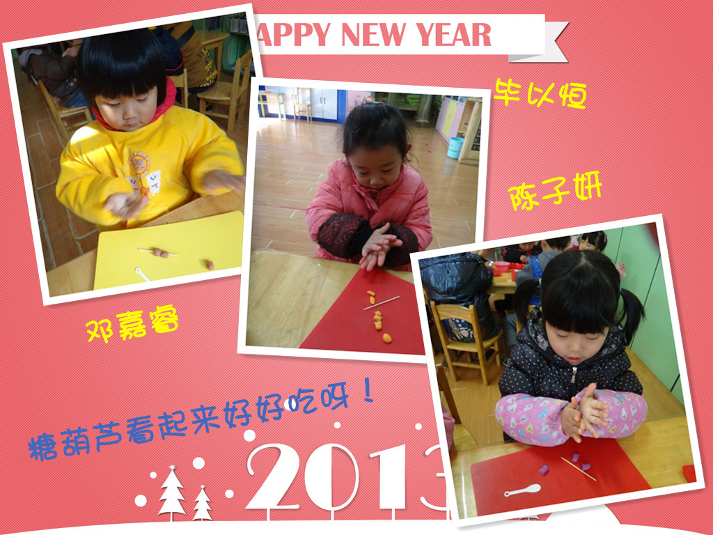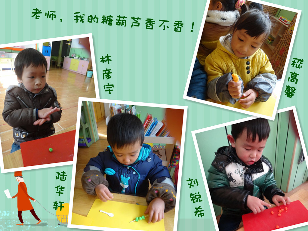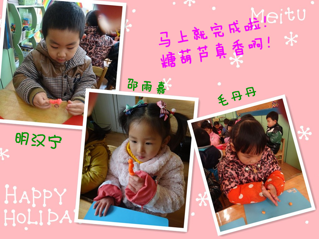 冰糖葫芦,好吃的冰糖葫芦!你想来一串嘛?可是只能看,不能吃哦。因为这些冰糖葫芦都是我们用彩色油泥做的。看上去是不是很美味啊!