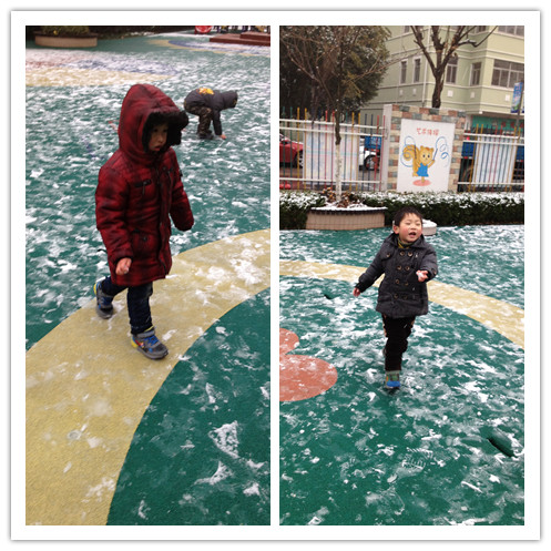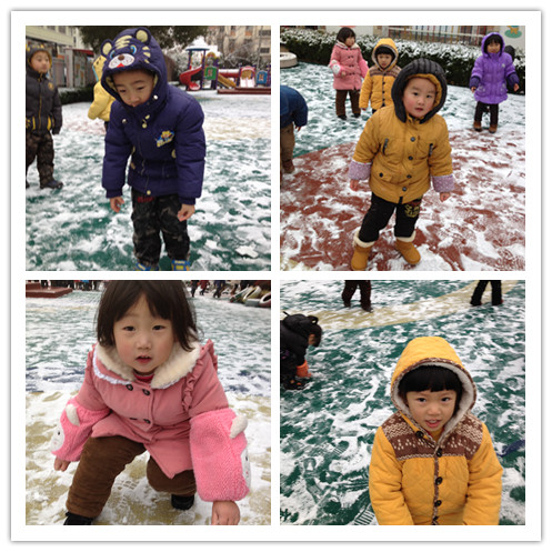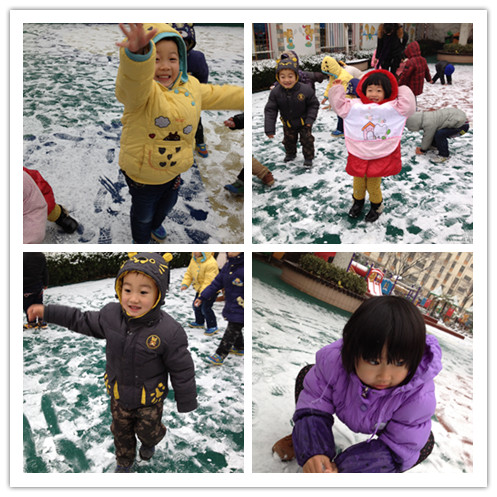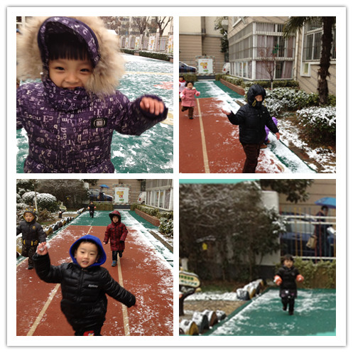 起到教室外感受飘落的雪花。我们还很开心的和老师一起打雪战。真开心~~~