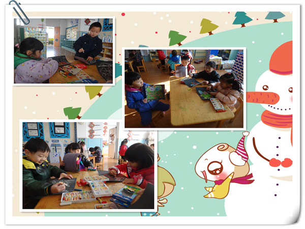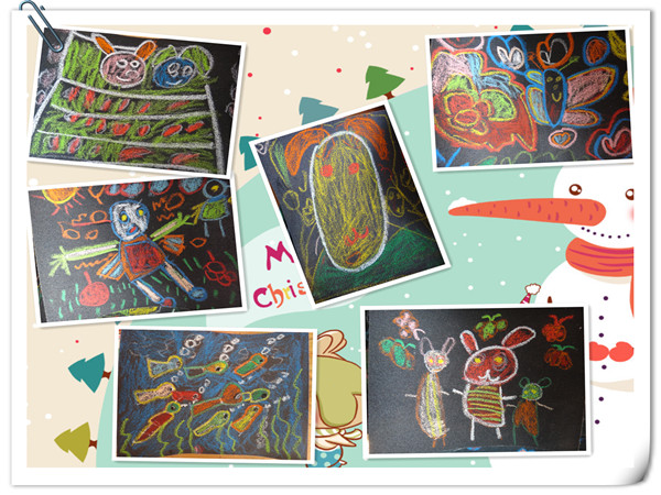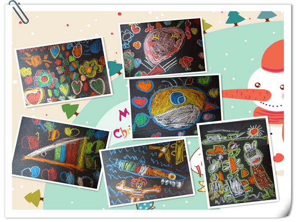 今天我们请小朋友在砂纸上画画,孩子们对这样的绘画形式充满了兴趣,看他们画的多么认真呀!